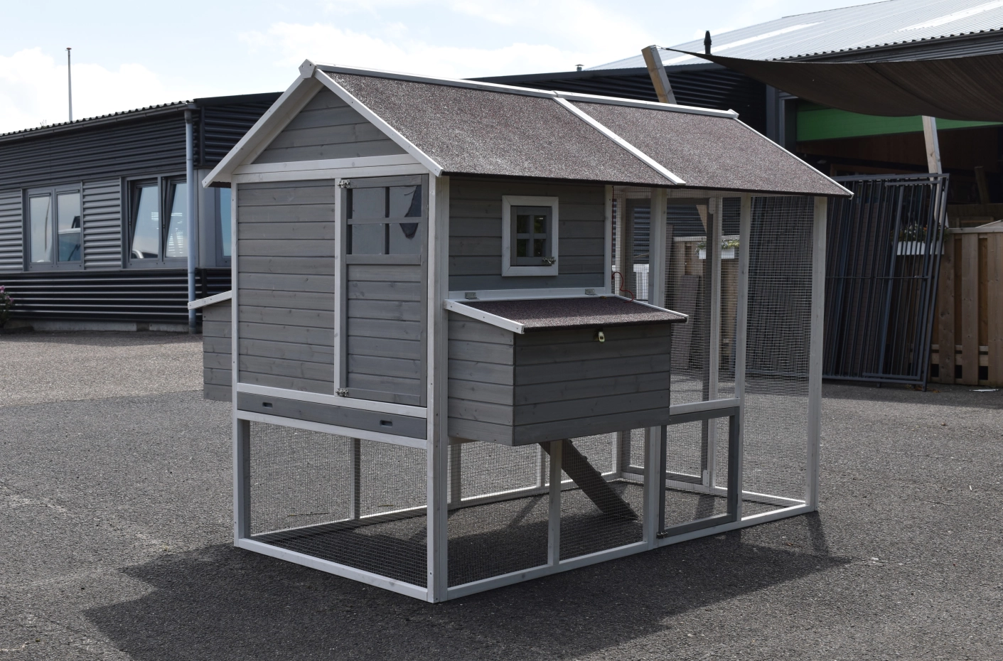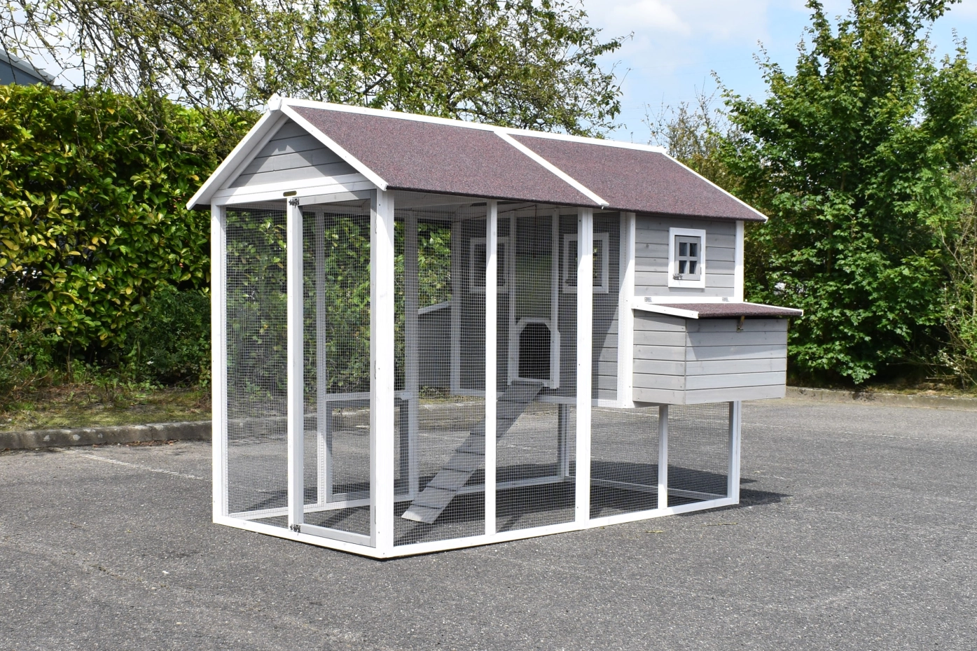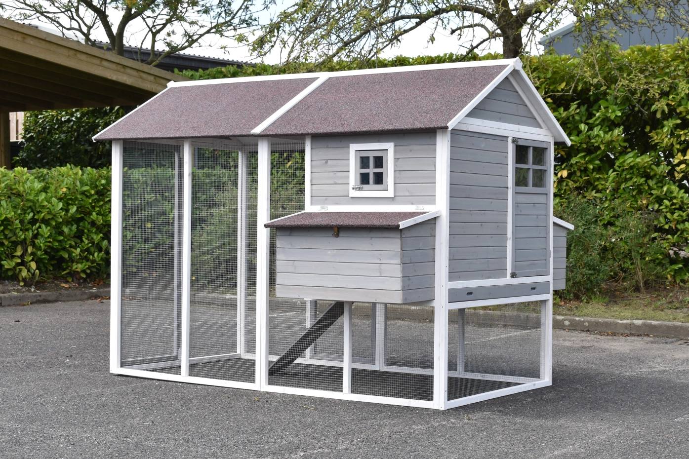 Kaninchenstall Royalty ist ein schöne, große Kaninchenstall. Diese Kaninchenstall hat ein groß Schlafraum und ein große Auslauf. Die max. Höhe im Auslaus ist 183cm. Der Stall ist geeignet für 4 à 8 Kaninchen. Der Kaninchenstall ist ausgestattet mit 2 Nistkasten. Unter der Schlafraum ist eine Schublade, um der Schlafraum einfach sauber zu machen. Der Schlafraum ist ausgestattet mit ein große Tür.