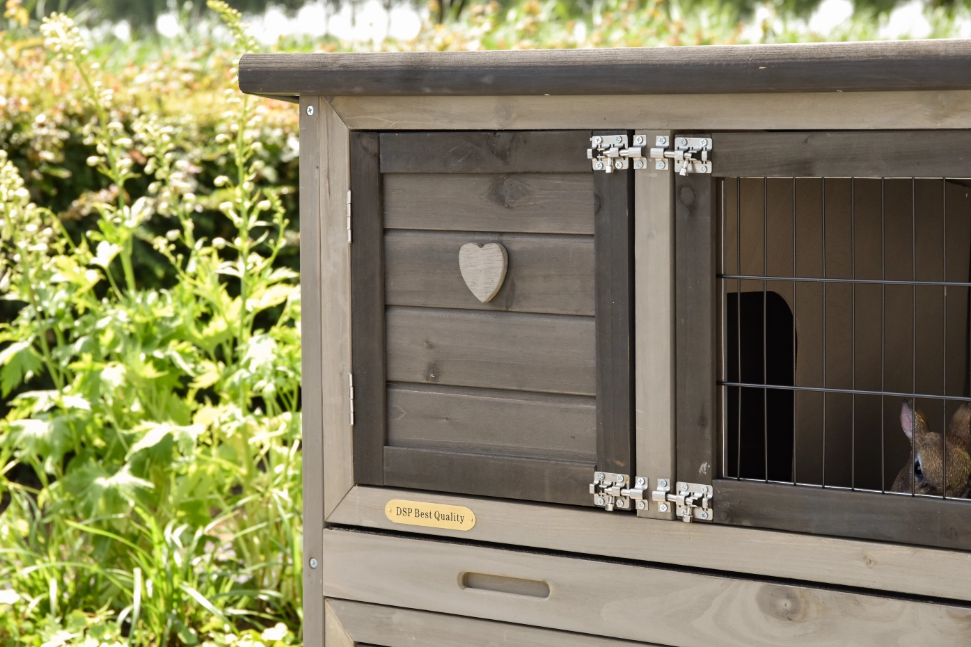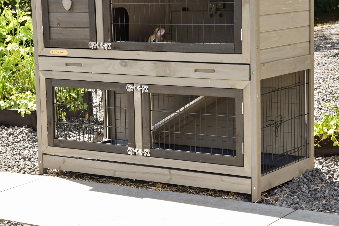 - Die Türen dieses Kaninchenstalls sind mit doppelten Schieberiegeln ausgestattet