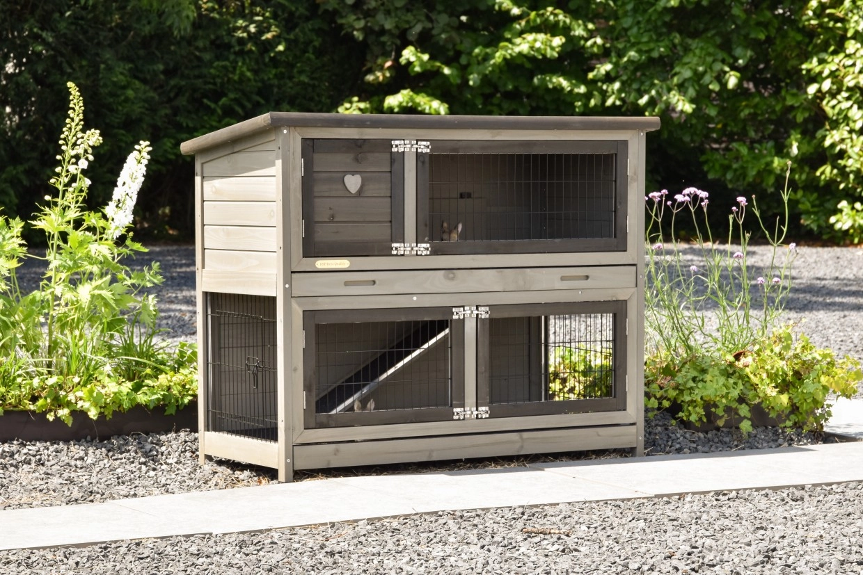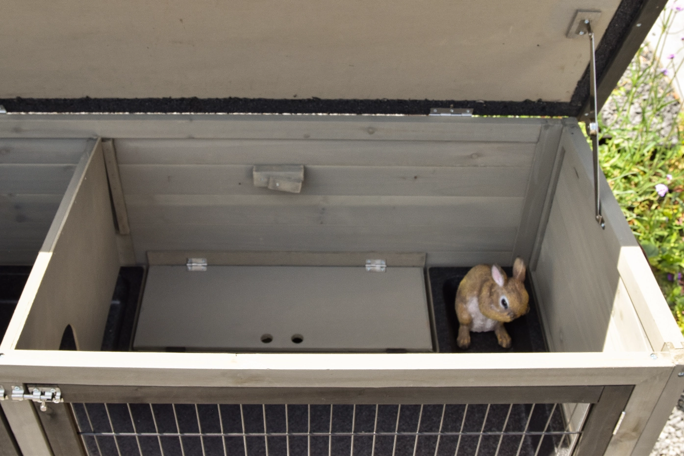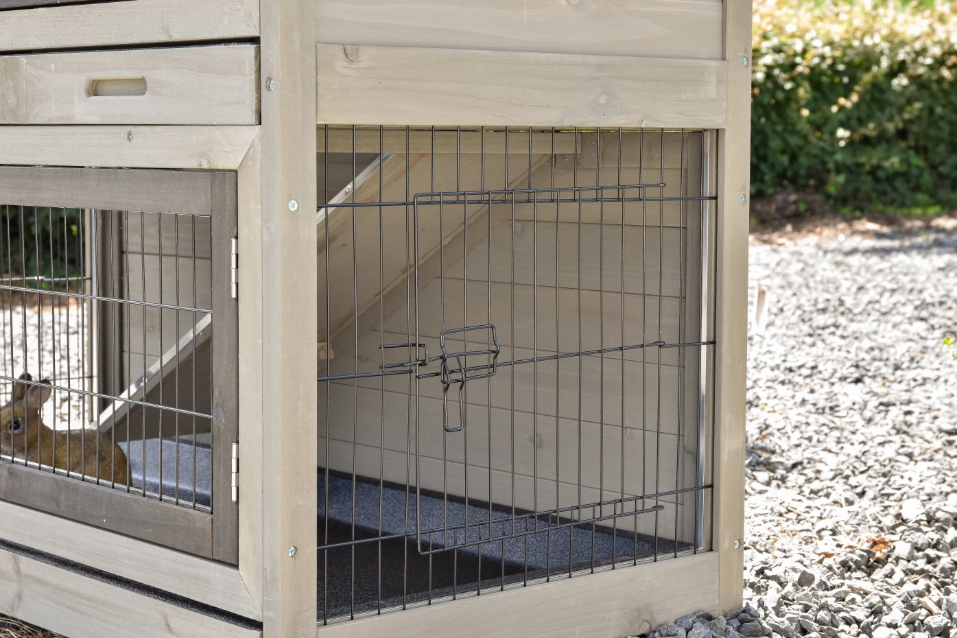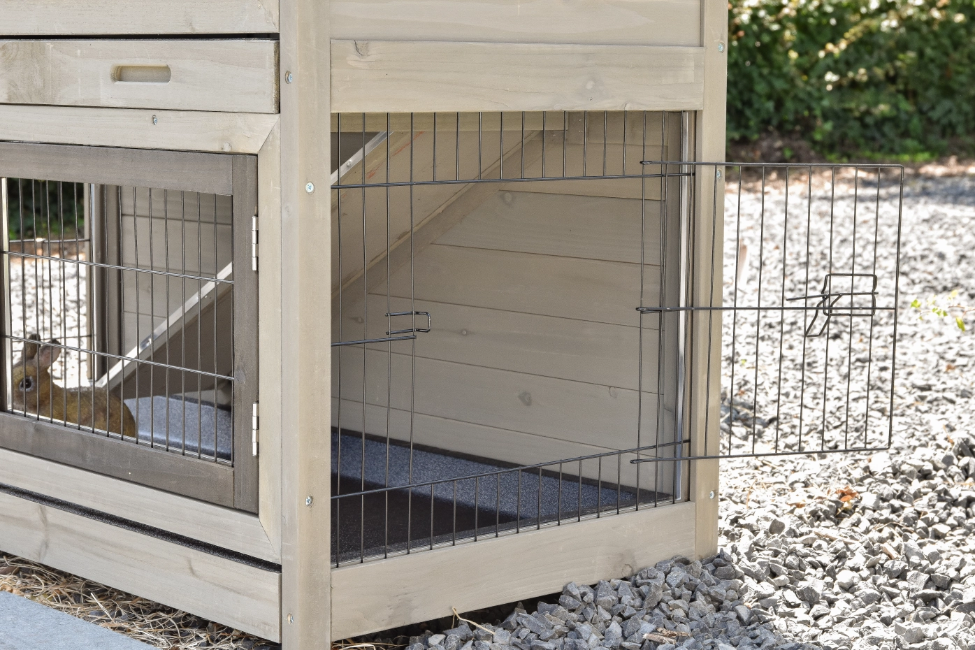 - Der Kaninchenstall besitzt eine praktische, herausziehbare Kotwanne.