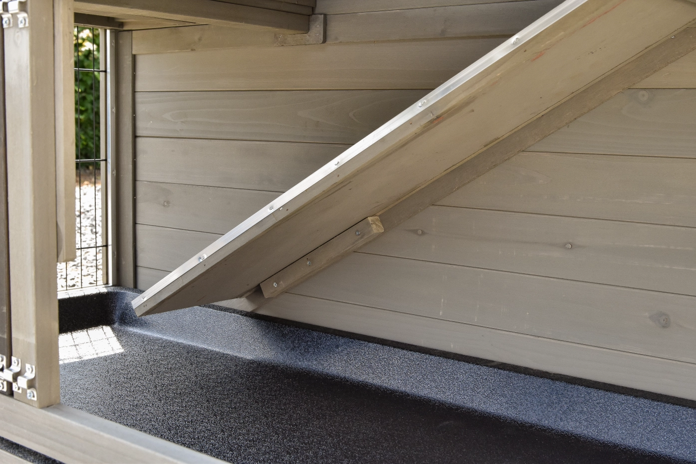- Der Stall ist an empfindlichsten Stellen mit Nageschutzstreifen ausgestattet. Für ungeschützte Ränder können Sie Nagerschutzstreifen bestellen.