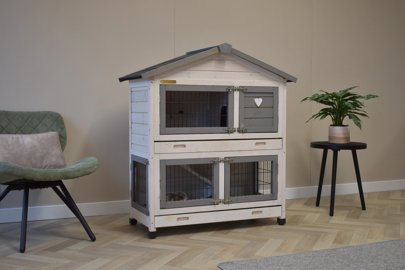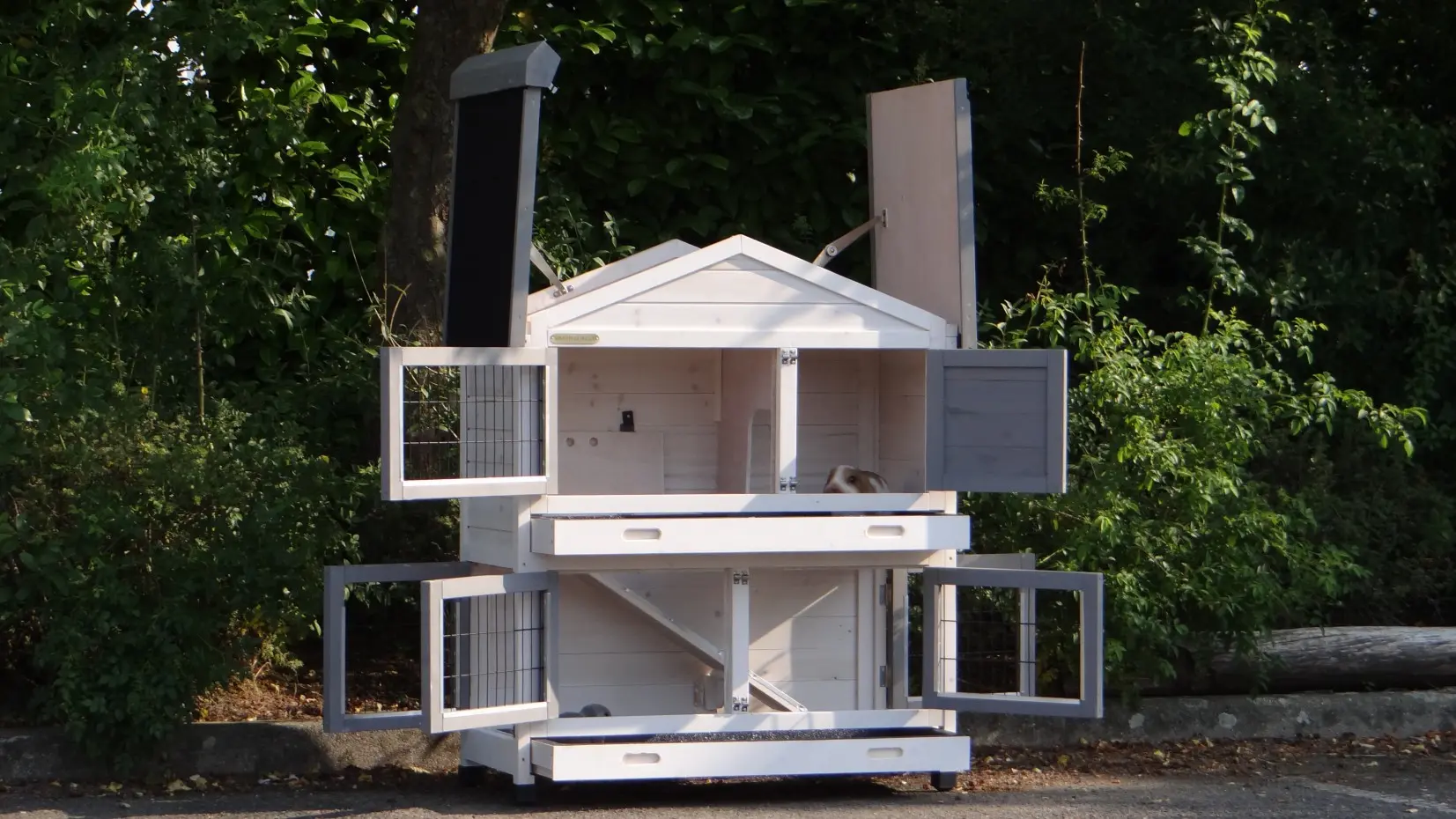 - Der Kaninchenstall besitzt eine praktische, herausziehbare Kotwanne.