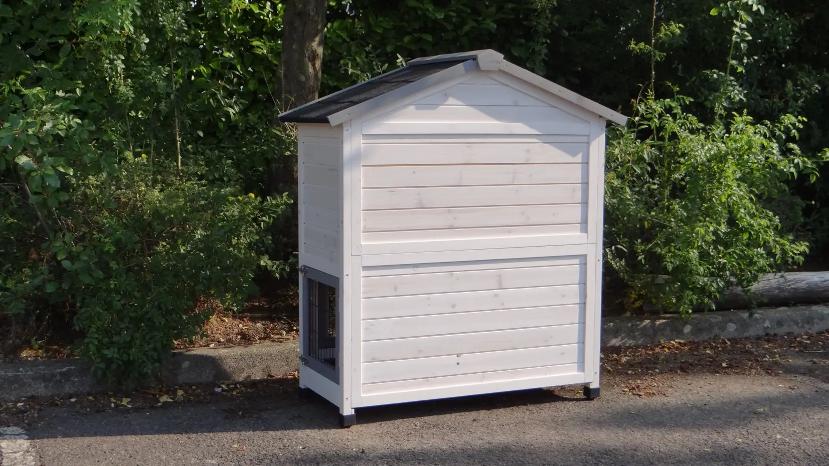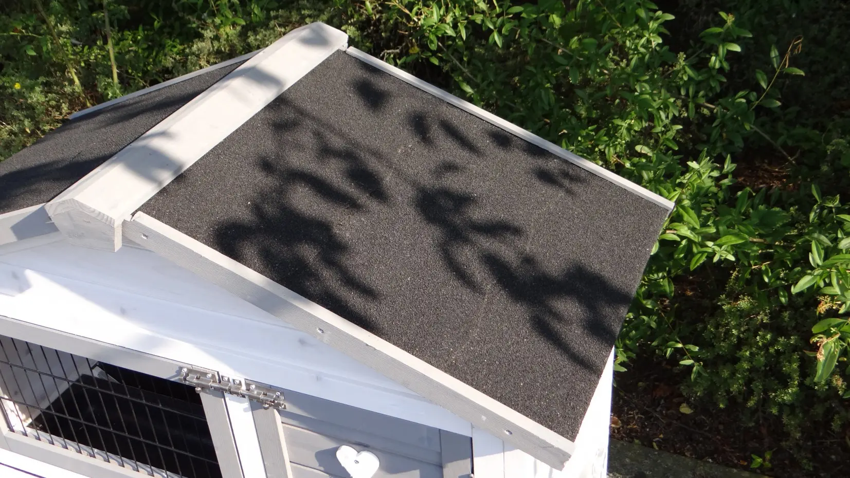 - Das Dach dieses Kaninchenstalls ist mit Dachpappe versehen.