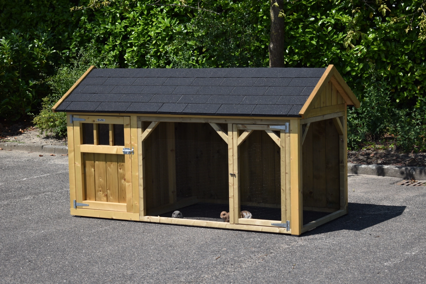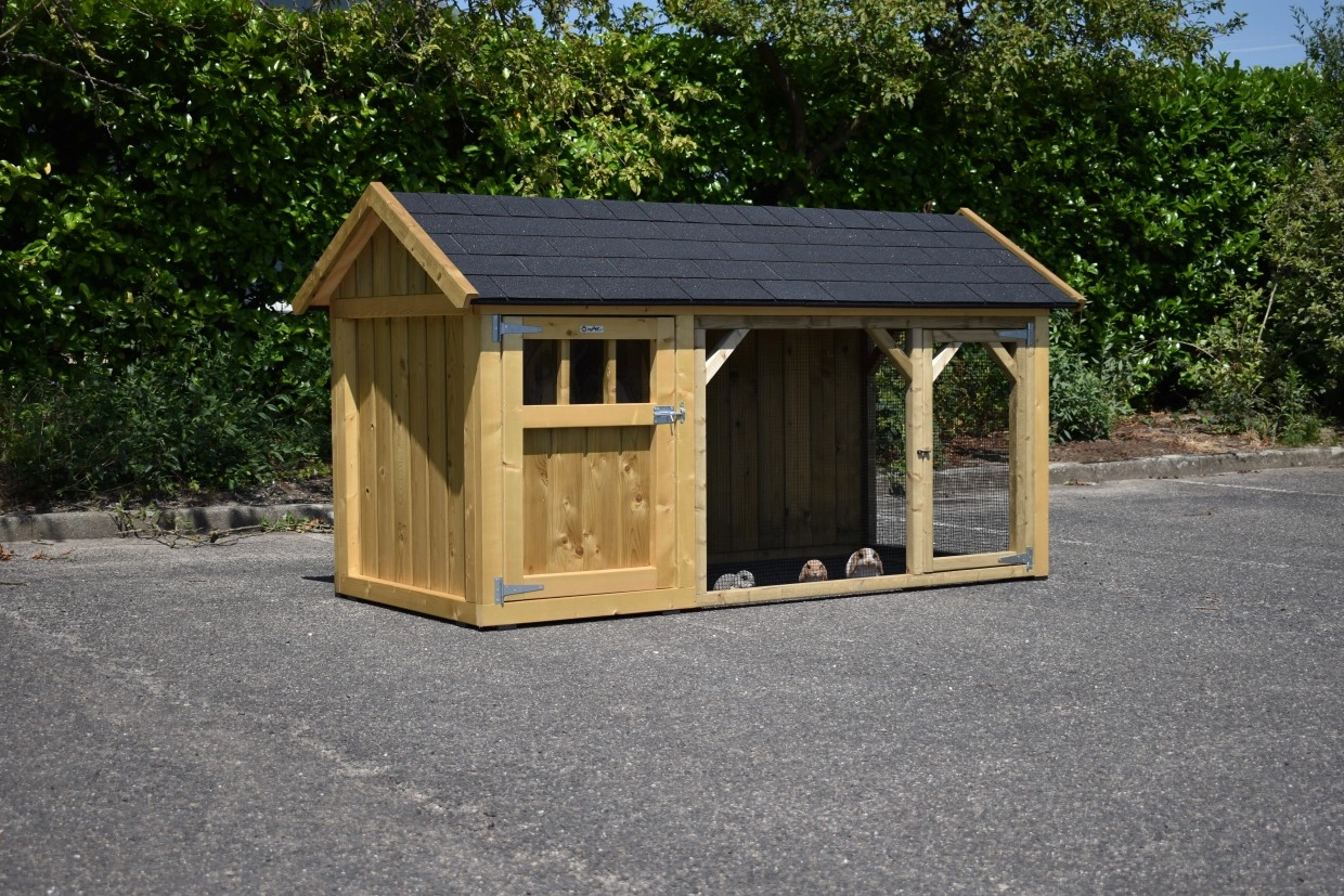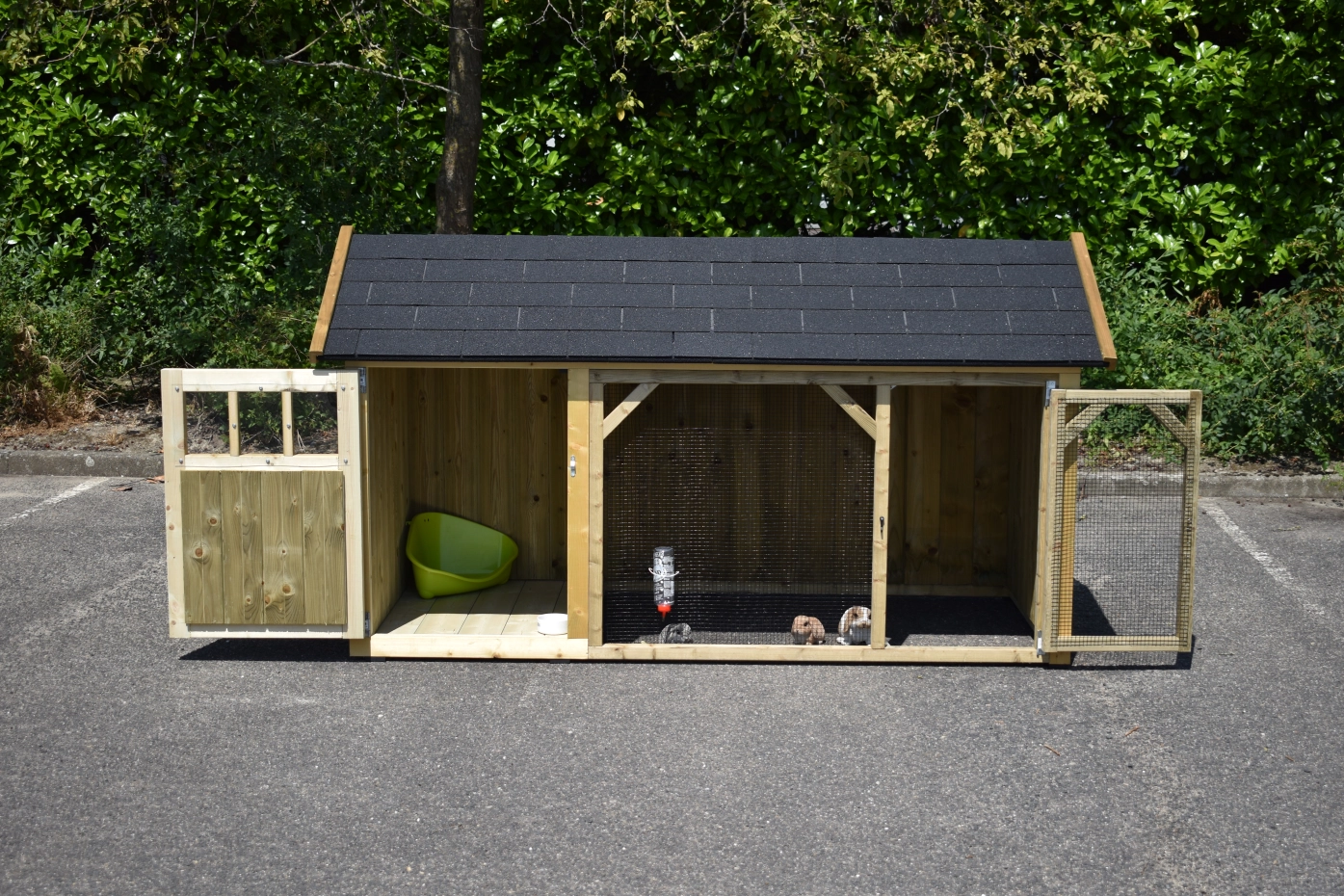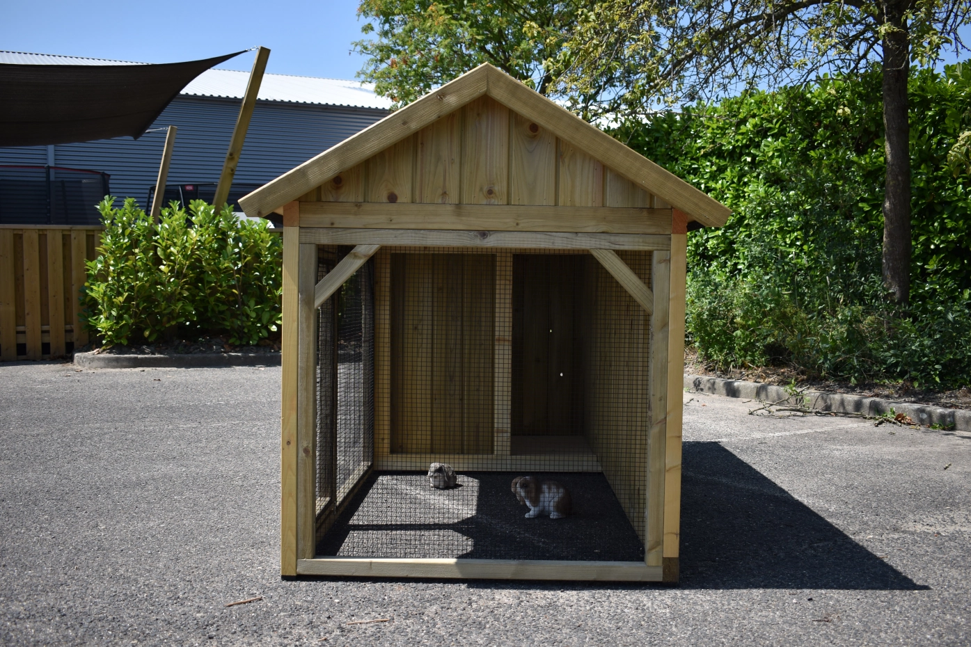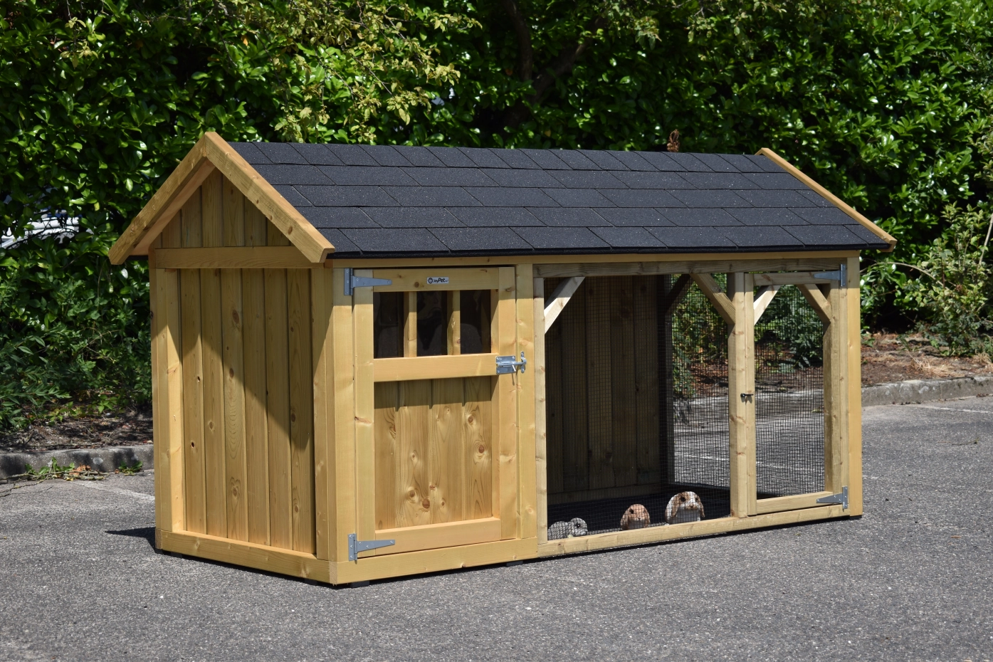 Kaninchenstall Belle 2 mit ein Spitzdach ist ein schöne Kaninchenstall mit ein überdachte Auslauf. Der Schlafraum ist ausgestattet mit ein Boden aus imprägniertes Holz. Wir herstellen diese Stall selbst! Durch die Verwendung von hochwertiger Materialien ist sie sehr wartungsfrei.