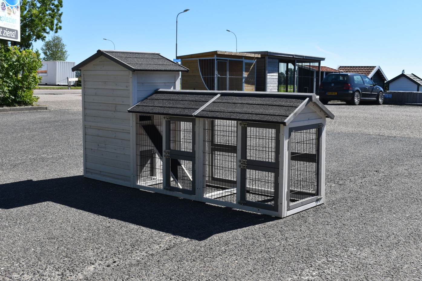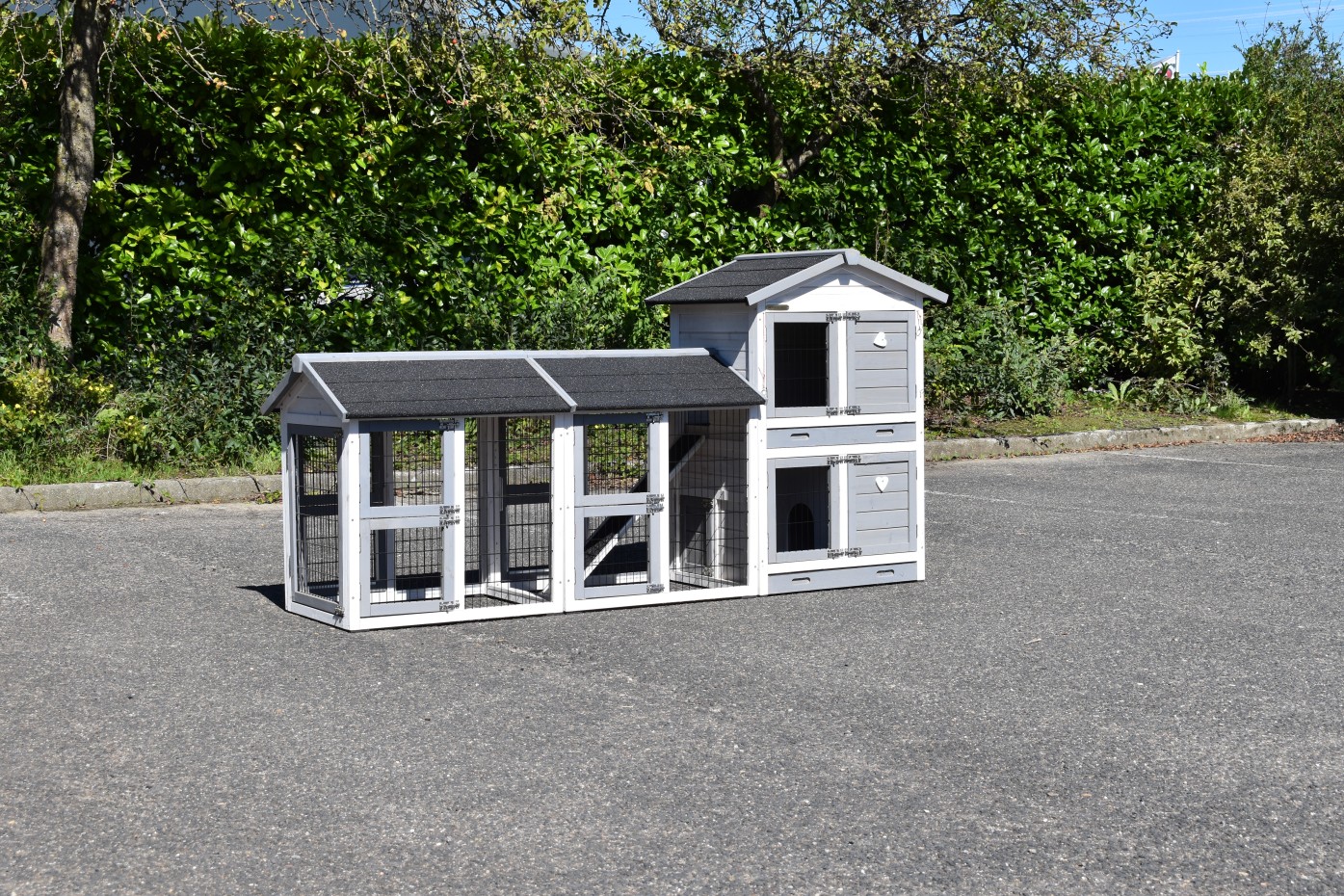 Der Kaninchenstall Double Small ist erweitert mit 2 Ausläufe. Der Stall ist ausgestattet mit 2 abschließbare Schlafräume. Durch der viele Türen und der 2 Schubladen ist der Stall leicht zu reinigen. Der Stall ist ausgestattet mit ein Klappdach und hat ein praktisch Stauraum. Diese Stall gibt der Möglichkeit um mehrere Tiere neben einander zu halten.