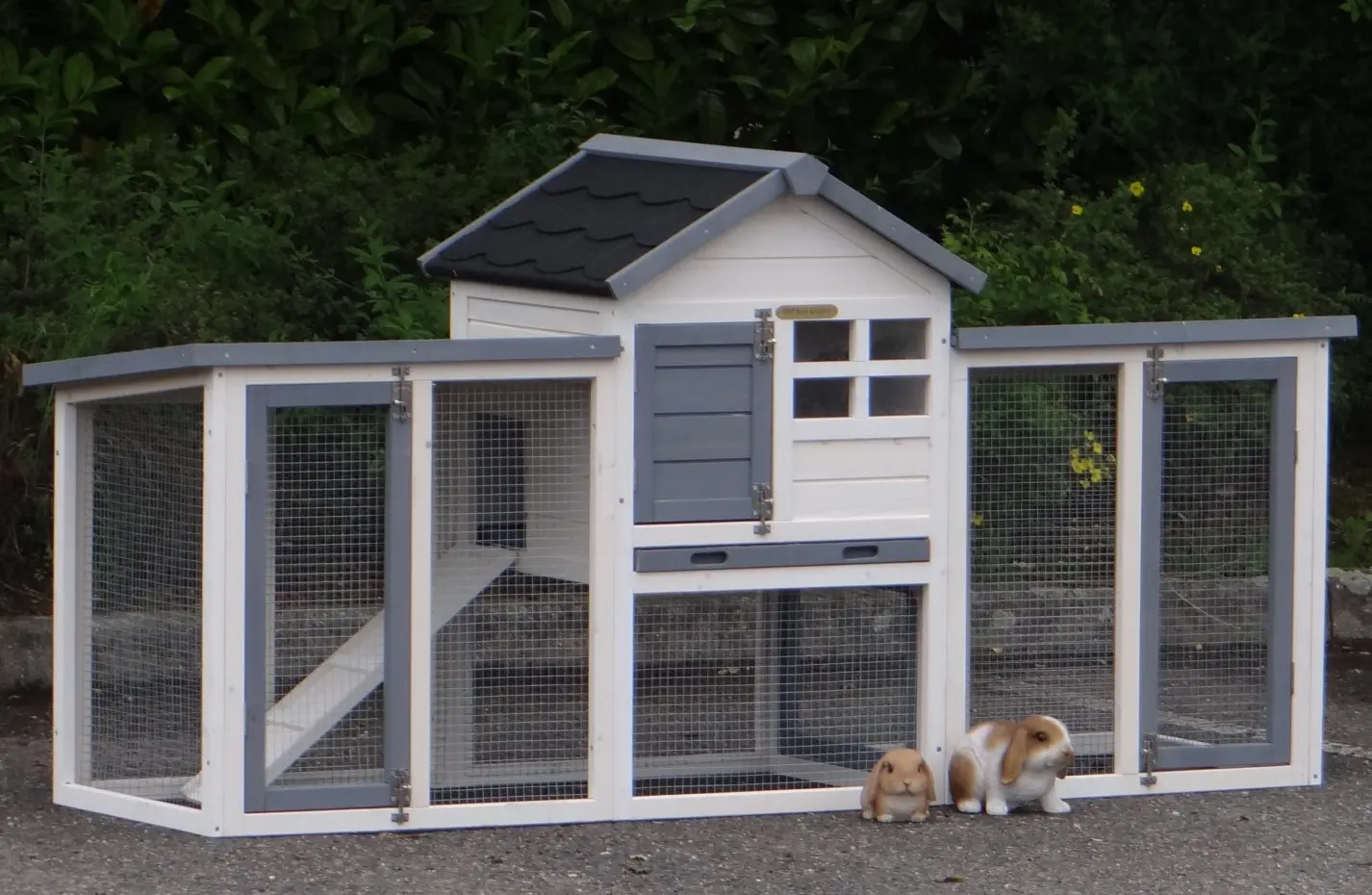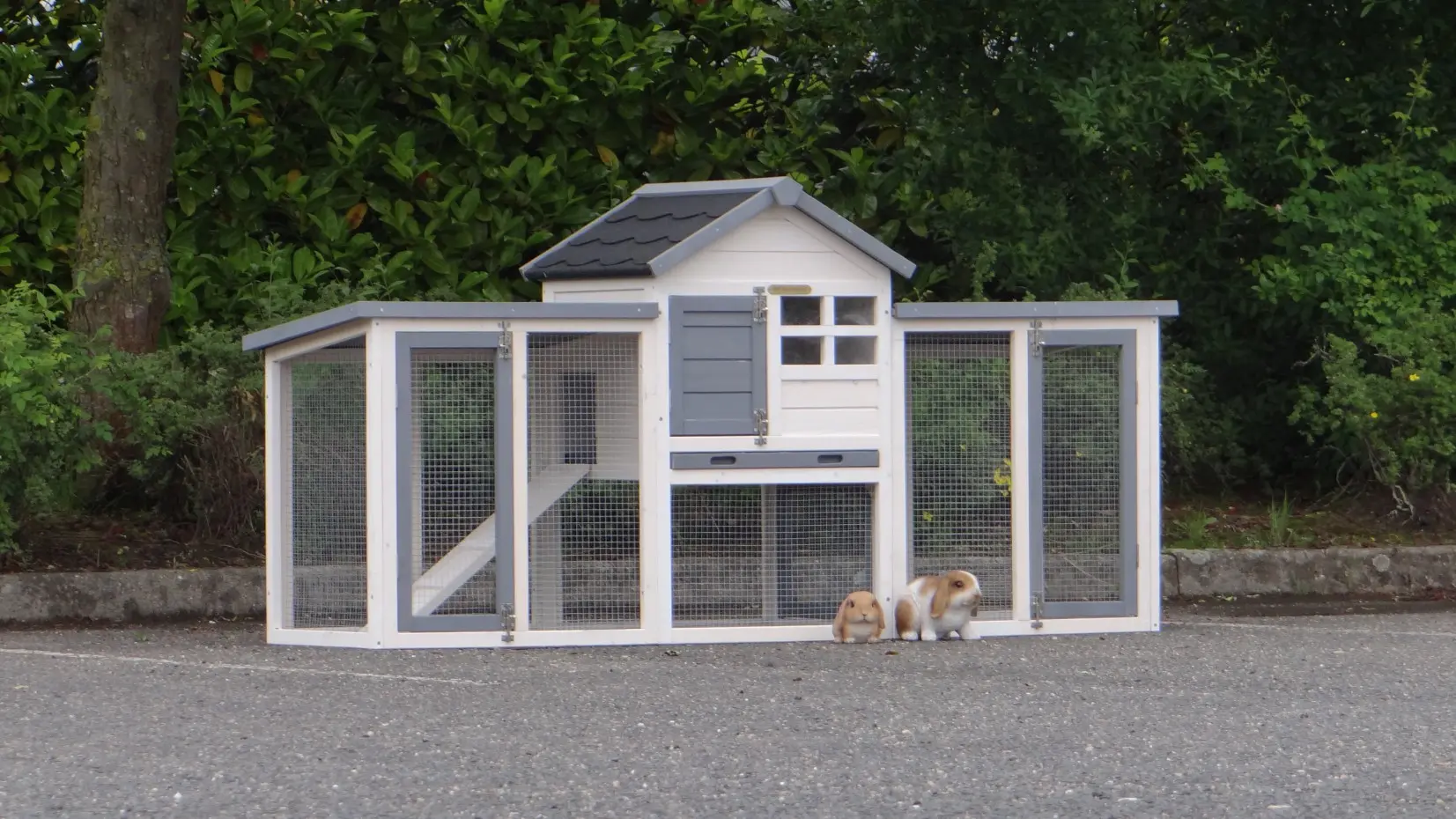 Das Kaninchenstall Advance Doppel ist ein praktischer und schön gestalteter Stall mit geräumigen Türen, einer herausziehbaren Kotlade und zwei angrenzenden Außenausläufen. Hier können Kaninchen von links nach rechts frei herumlaufen. Beide Außenausläufe sind mit Dächern ausgestattet, um vor Witterungseinflüssen zu schützen. Obwohl einige Bilder und Videos den Stall ohne den rechten Auslauf zeigen mögen, wird dieser tatsächlich mitgeliefert. Dieser Kaninchenstall bietet Platz und Komfort für Ihre Kaninchen, damit sie sicher und glücklich in einer geräumigen Umgebung leben können, die ihren Bedürfnissen entspricht.