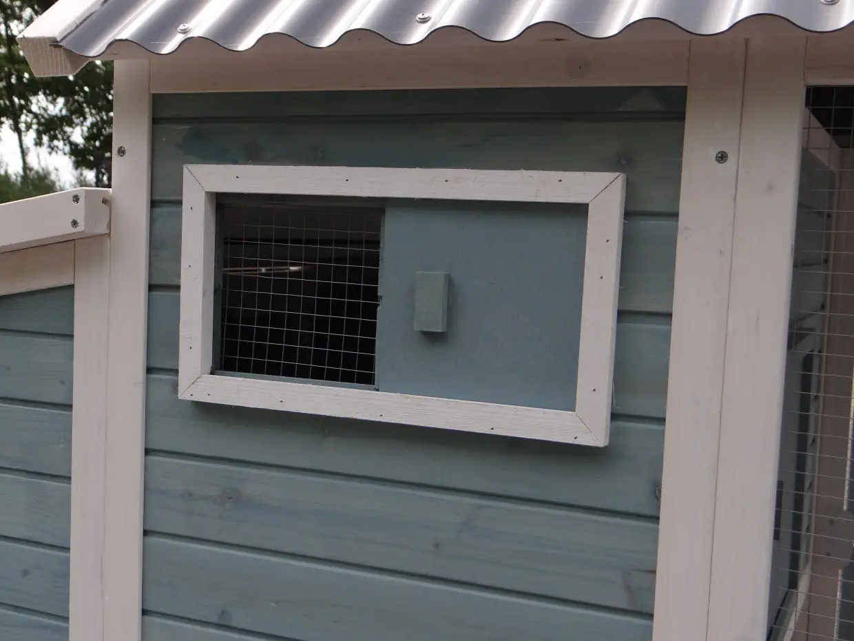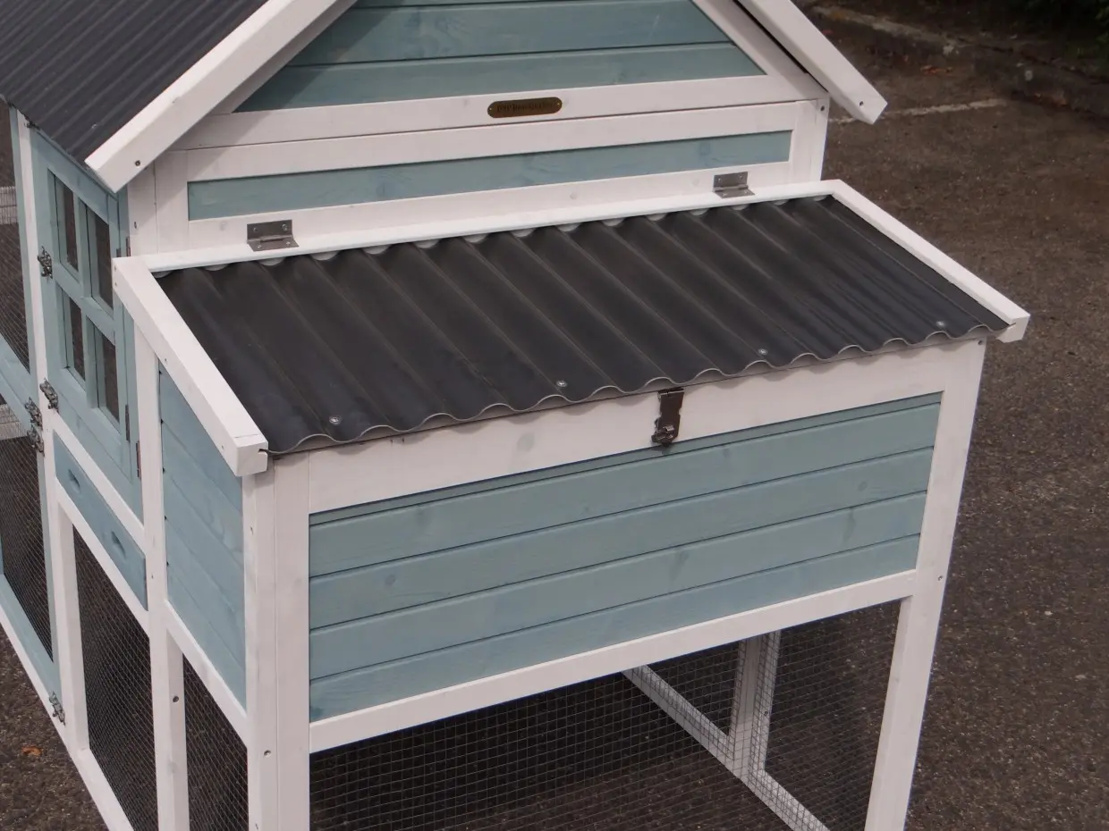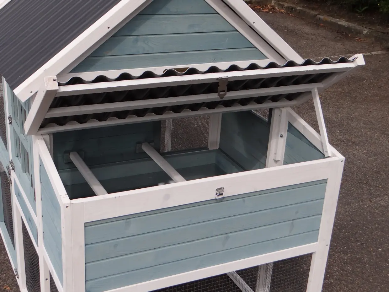 - Das Dach dieses Kaninchenstalls ist von Kunststof.