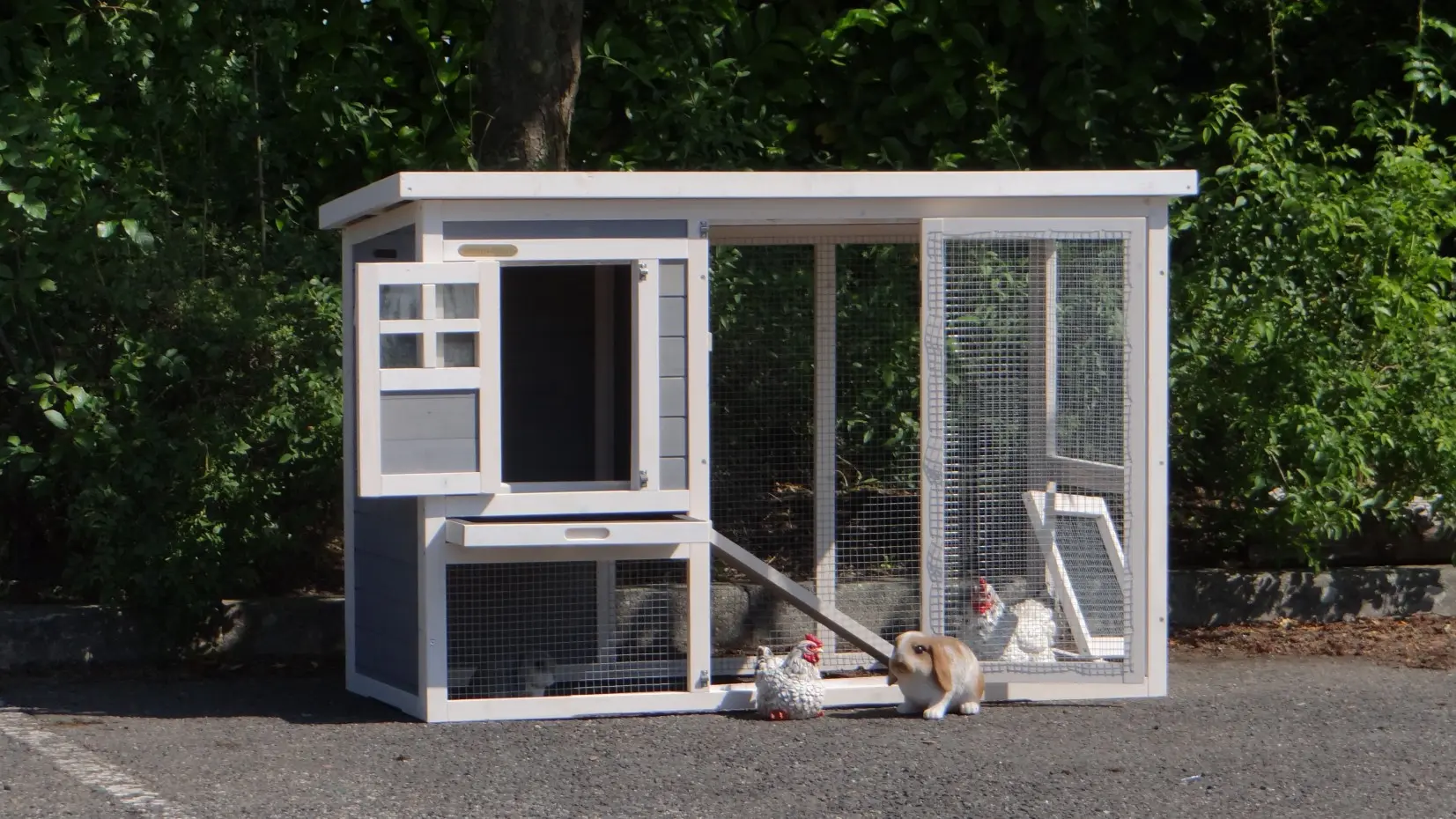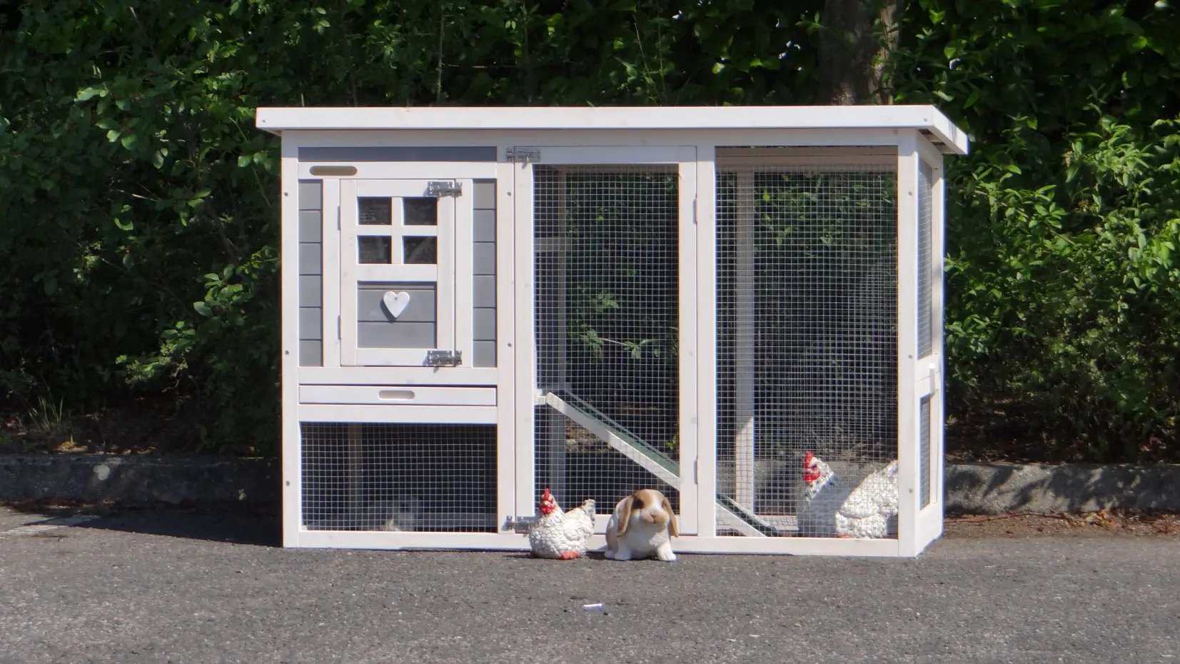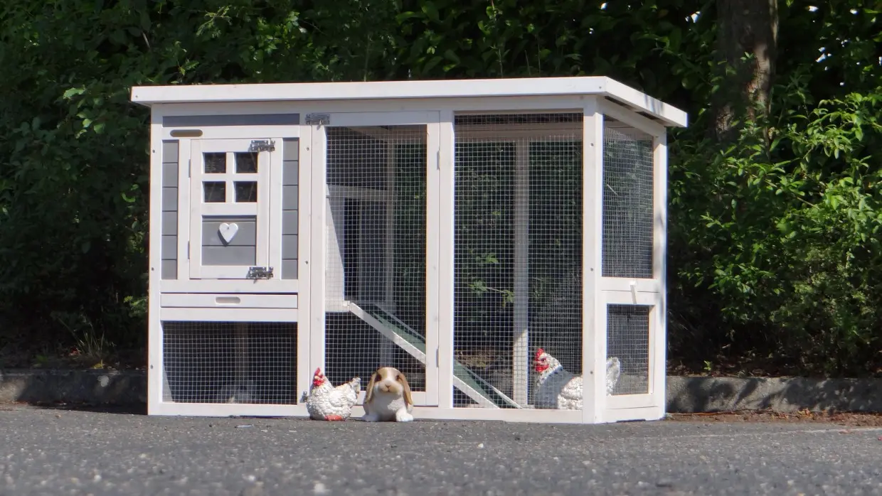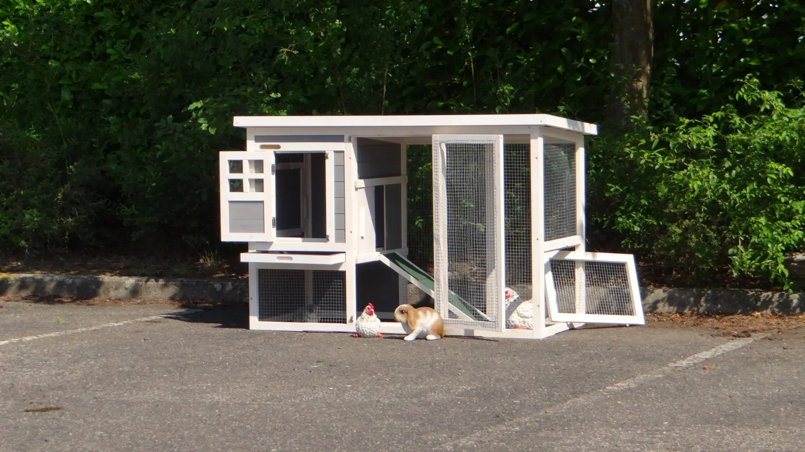 - Das Dach dieses Kaninchenstalls ist von Kunststof.