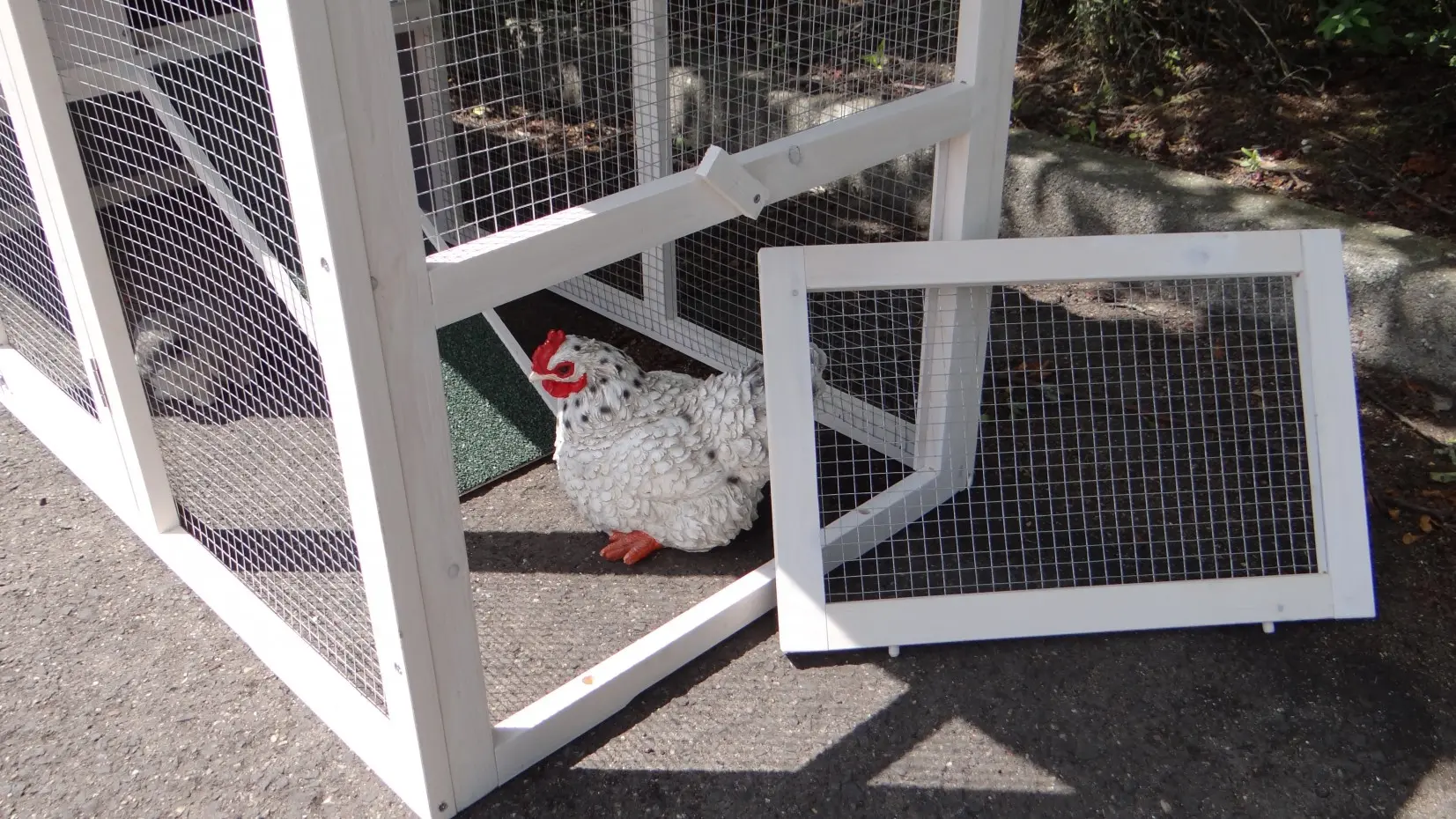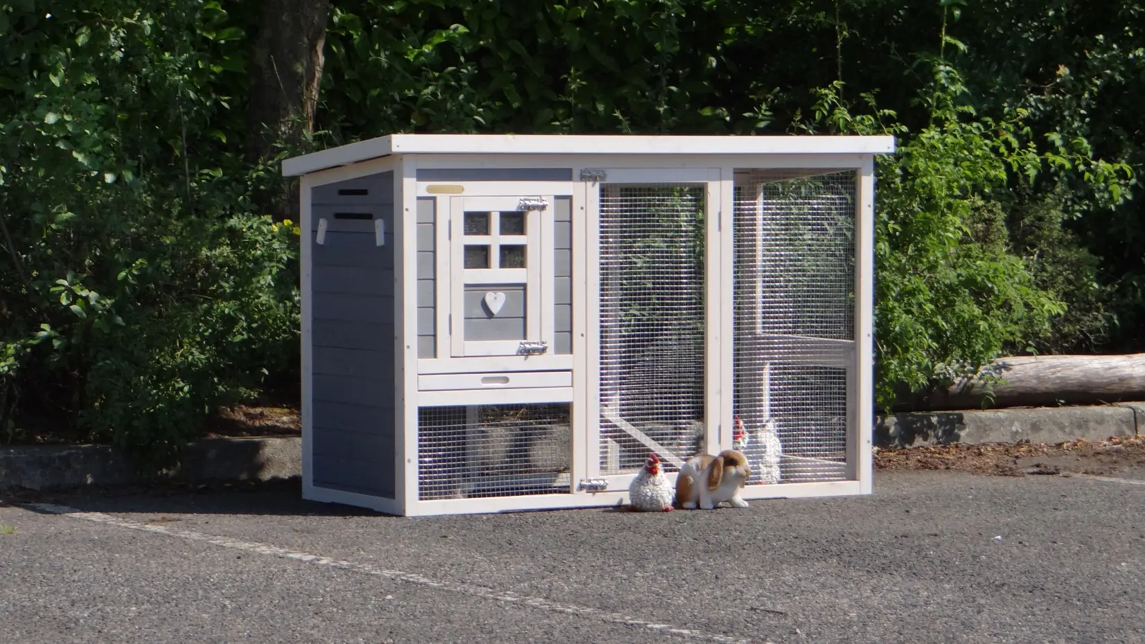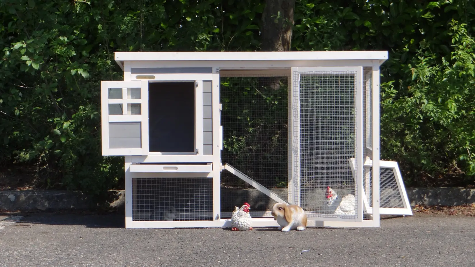 - Das Dach dieses Kaninchenstalls ist von Kunststof.
