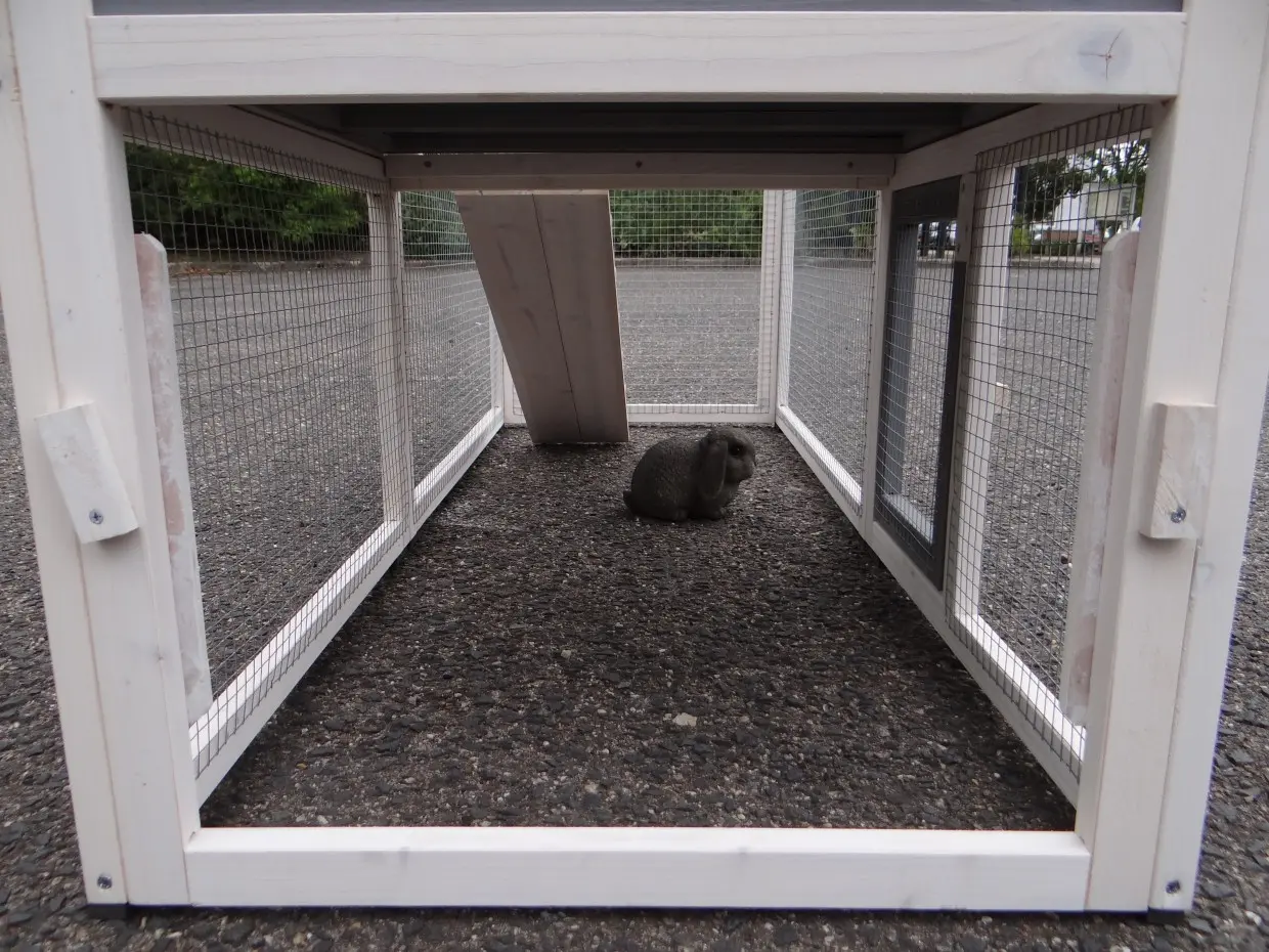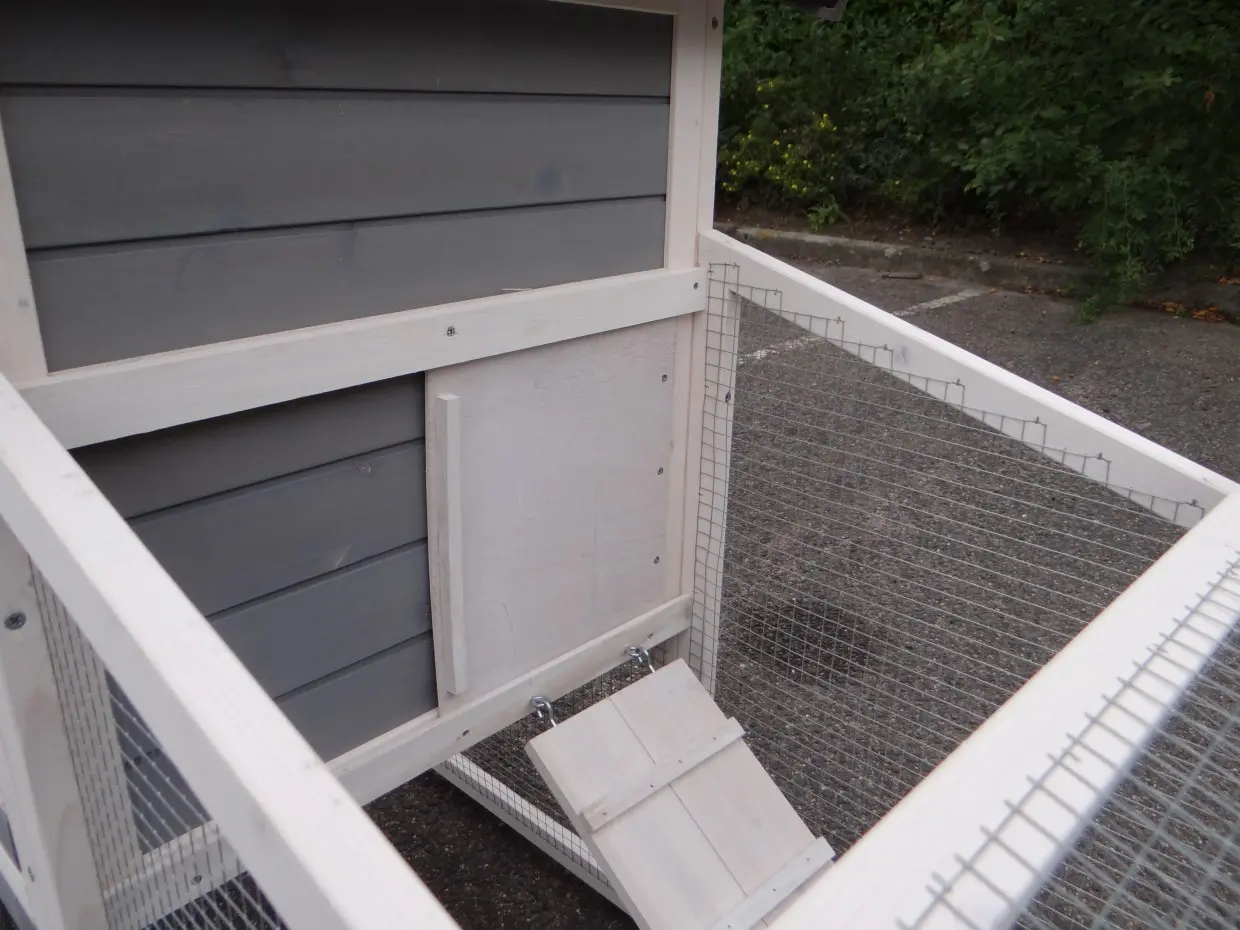- Der Auslauf hat ein Dach aus Gitter (ca. 12x12mm)