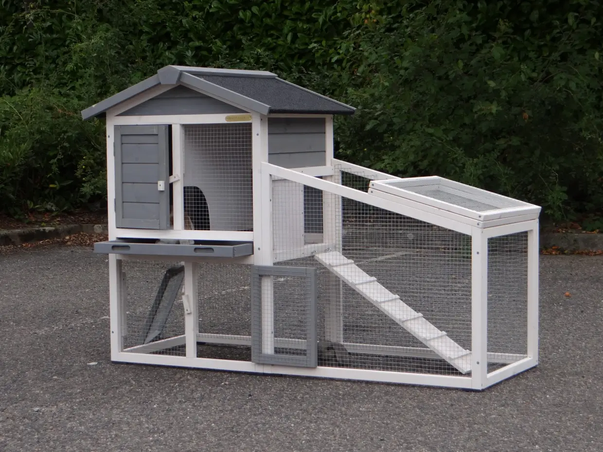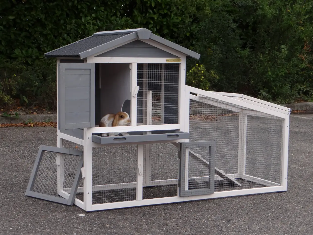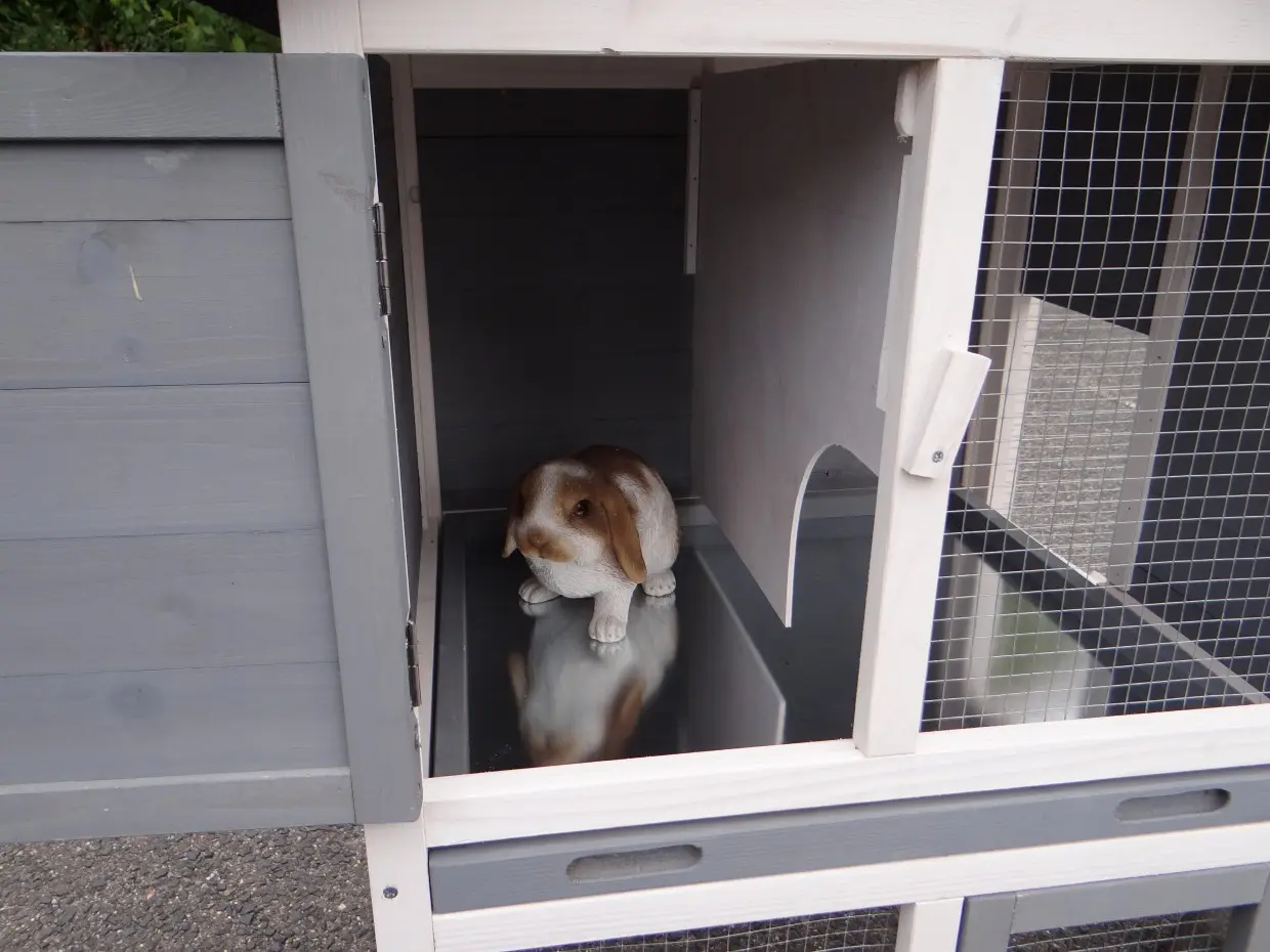 Kaninchenstall Cato ist ein preisgünstige Kaninchenstall, aber mit ein große Auslauf. Der Auslauf hat 2 Türen und auch ein klappbares Dach an der Obenseite. Kaninchenstall Cato ist ein schöne und praktische Stall für Ihres Kaninchen. Der Schlafraum ist abschließbar. Der Schlafraum ist ausgestattet mit ein Schublade, um der Stall einfach zu können reinigen.