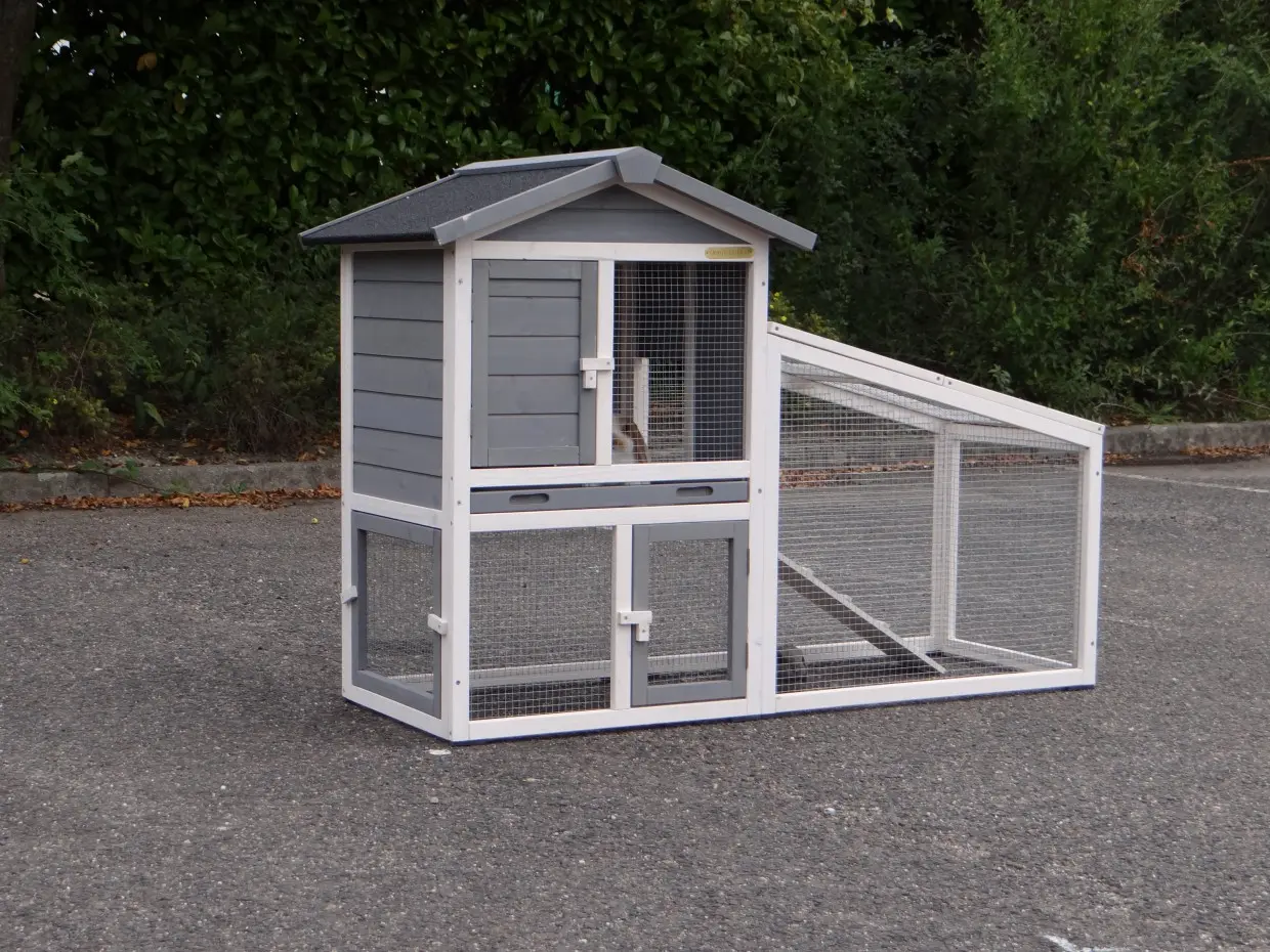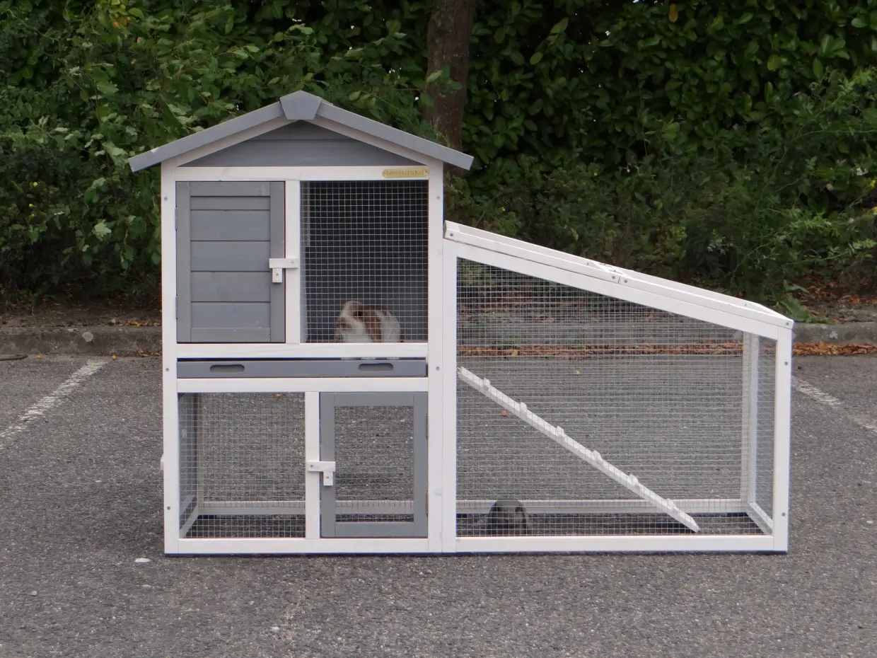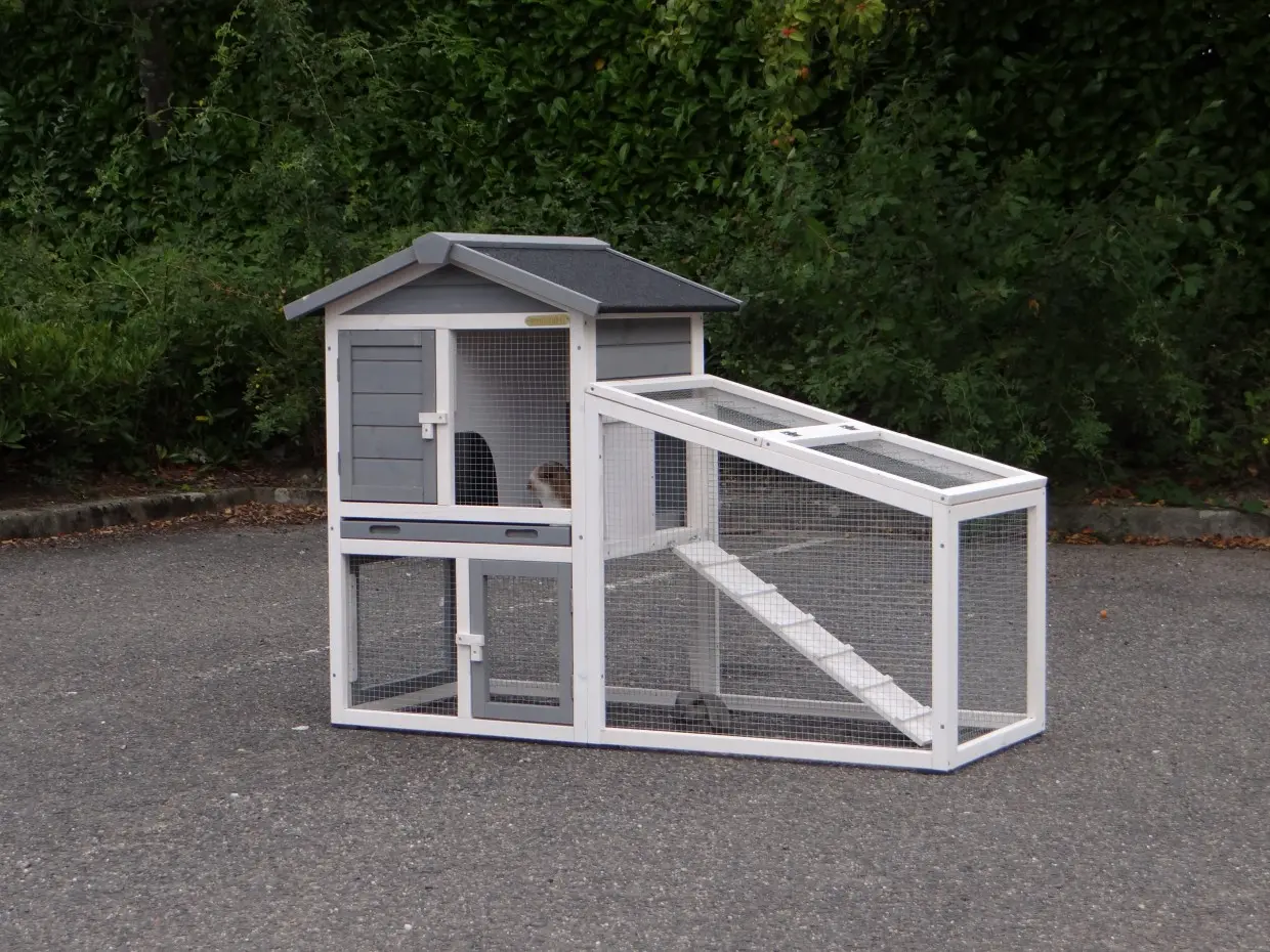 Kaninchenstall Cato ist ein preisgünstige Kaninchenstall, aber mit ein große Auslauf. Der Auslauf hat 2 Türen und auch ein klappbares Dach an der Obenseite. Kaninchenstall Cato ist ein schöne und praktische Stall für Ihres Kaninchen. Der Schlafraum ist abschließbar. Der Schlafraum ist ausgestattet mit ein Schublade, um der Stall einfach zu können reinigen.