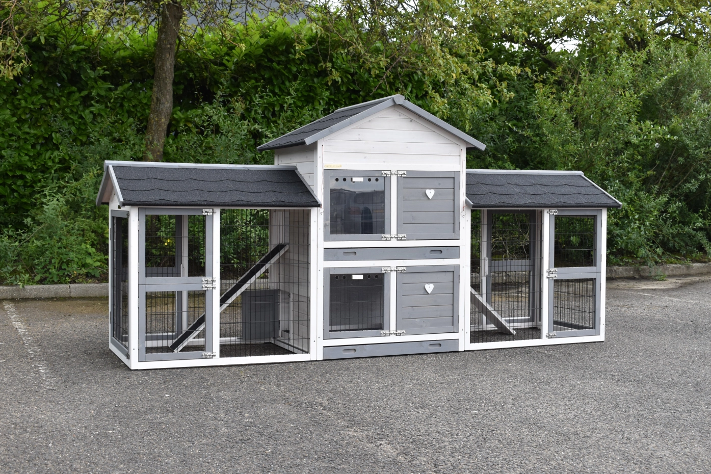 Der Kaninchenstall Double Medium mit 2 Ausläufen ist eine hochwertige und geräumige Unterbringungsmöglichkeit für Ihre Kaninchen. Mit antiknabber Finish an allen Türen, zwei abschließbaren Schlafbereichen, zwei großzügigen Ausläufen und zwei praktischen Rampen. Dieser Stall eignet sich hervorragend, um mehrere Kaninchen getrennt und komfortabel unterzubringen.