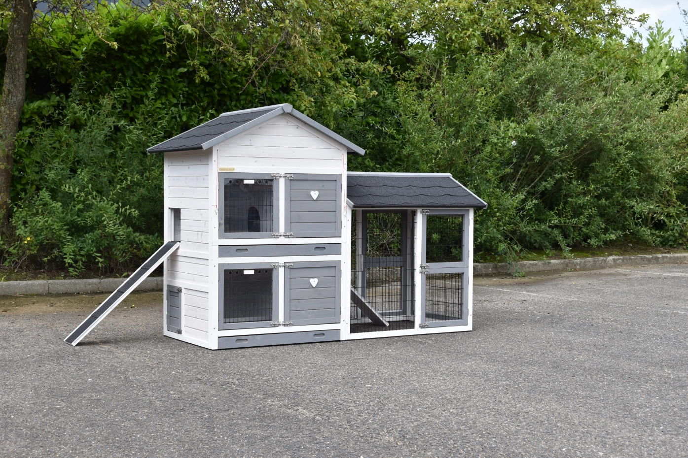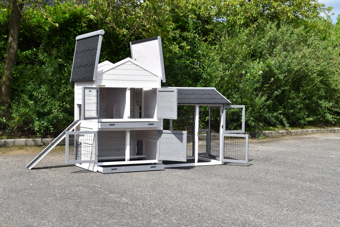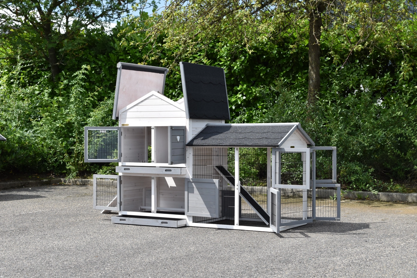 - Der Kaninchenstall besitzt eine praktische, herausziehbare Kotwanne.