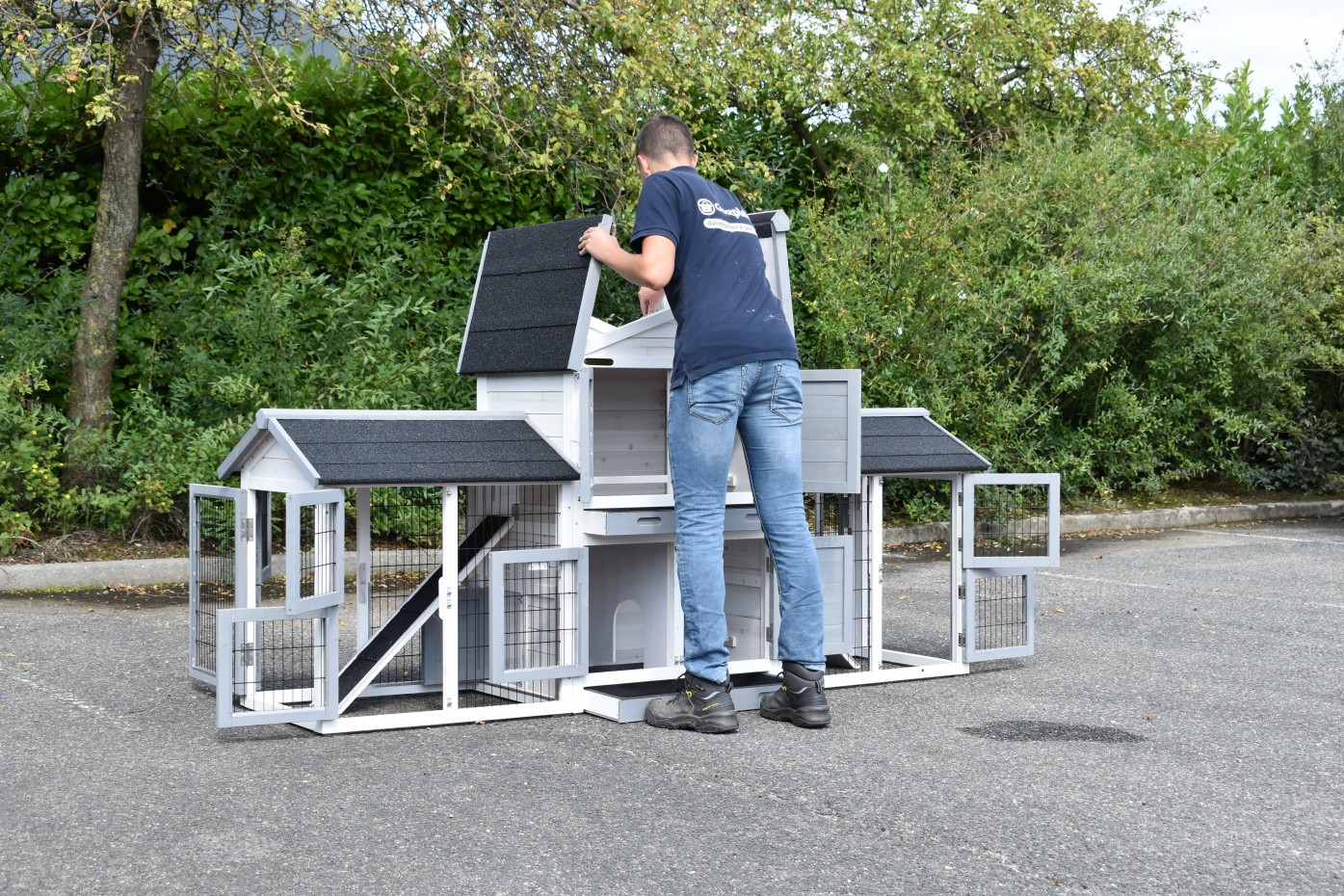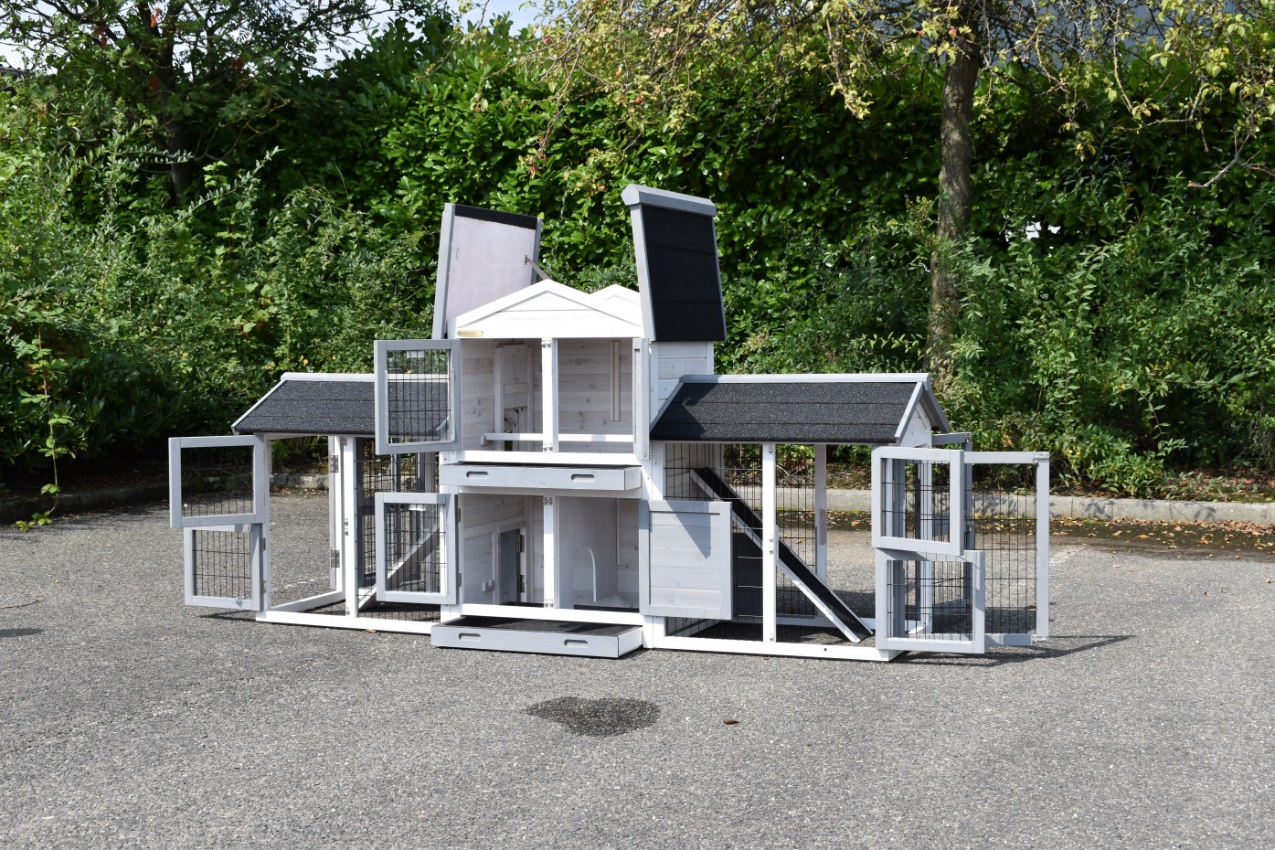 - Der Kaninchenstall besitzt eine praktische, herausziehbare Kotwanne.