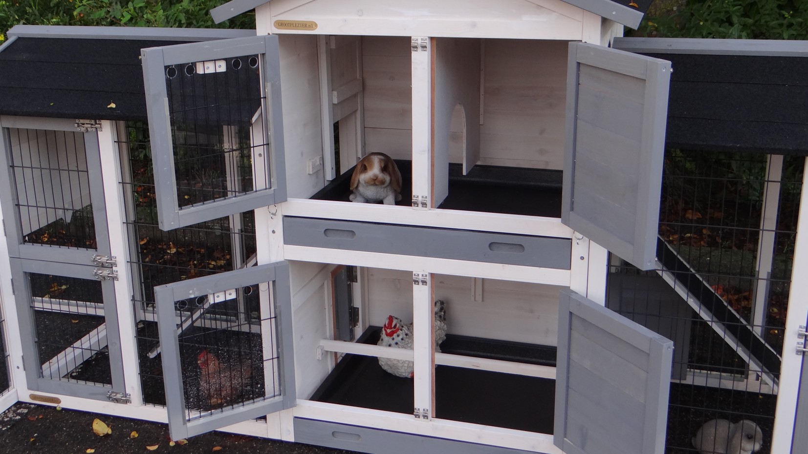 Der Kaninchenstall Double Small wurde um 2 Ausläufe erweitert. Der Double Small ist ein sehr schöner Kaninchenstall mit vielen Türen. Der Multirun kann auch einfach alleine verwendet werden. Ein praktischer Kaninchenstall mit zwei abschließbaren Schlafhäusern. Dieser Stall ermöglicht es, Ihre Tiere voneinander getrennt zu halten.