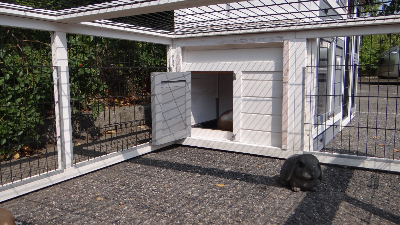 - Der Kaninchenstall besitzt eine praktische, herausziehbare Kotwanne.