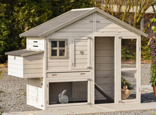 - Die Türen dieses Kaninchenstalls sind mit doppelten Schieberiegeln ausgestattet
