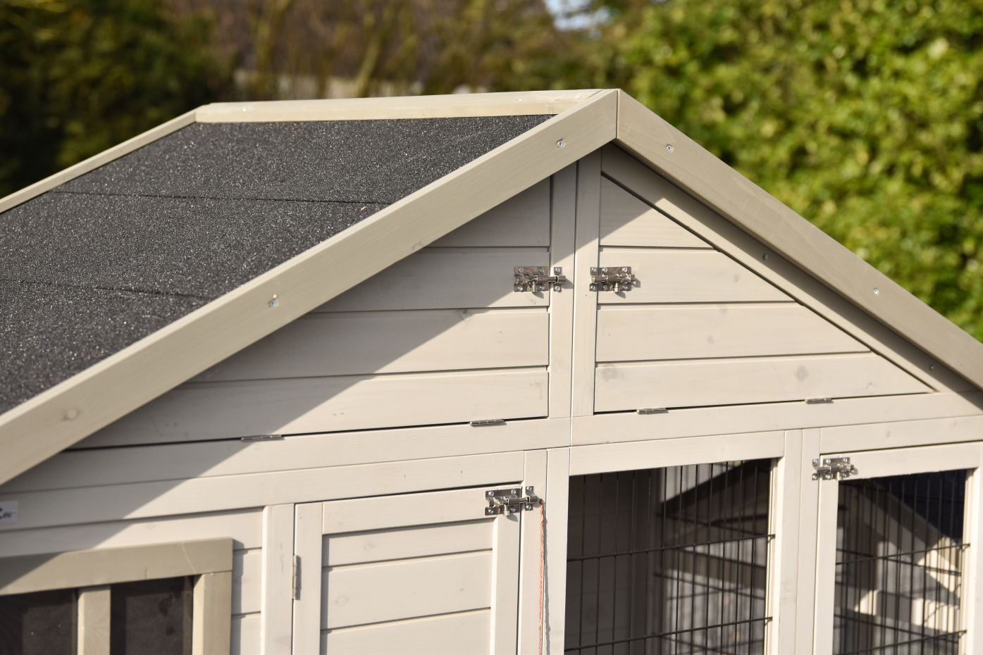 - Das Dach dieses Kaninchenstalls ist mit Dachpappe versehen.