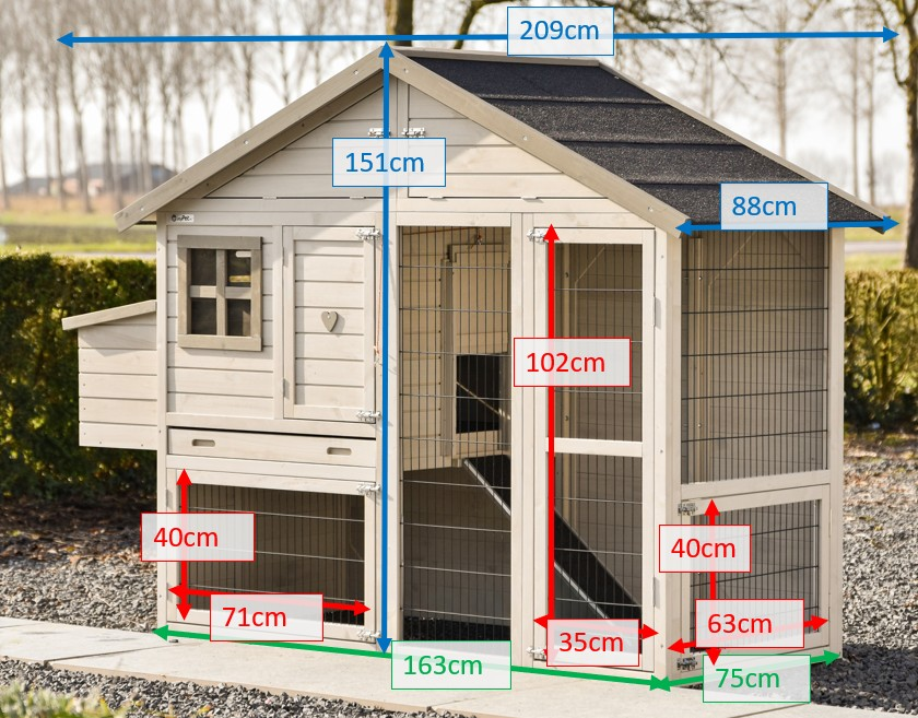 | Außenabmessungen einschl. Dach und Nistkasten (BxTxH) | 209x88x151cm |