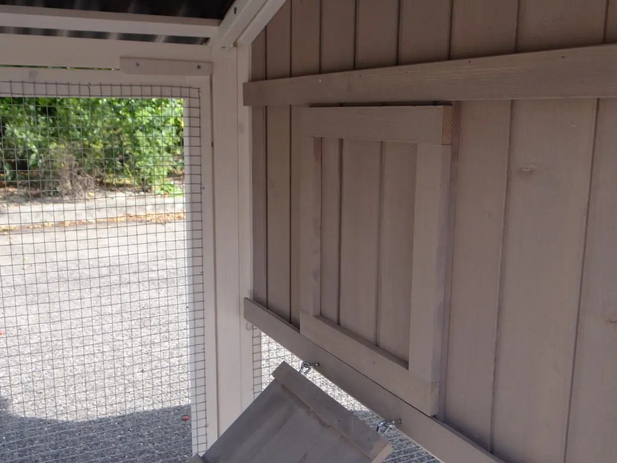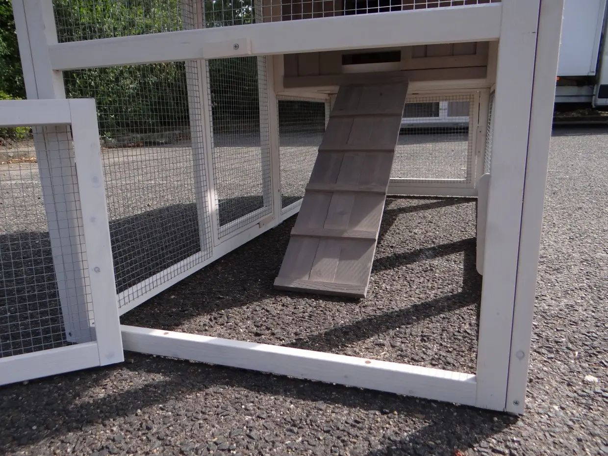 - Der Auslauf hat ein Dach aus Gitter (ca. 12x12mm)
