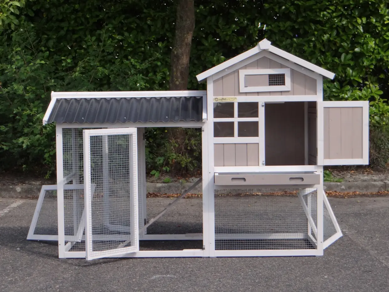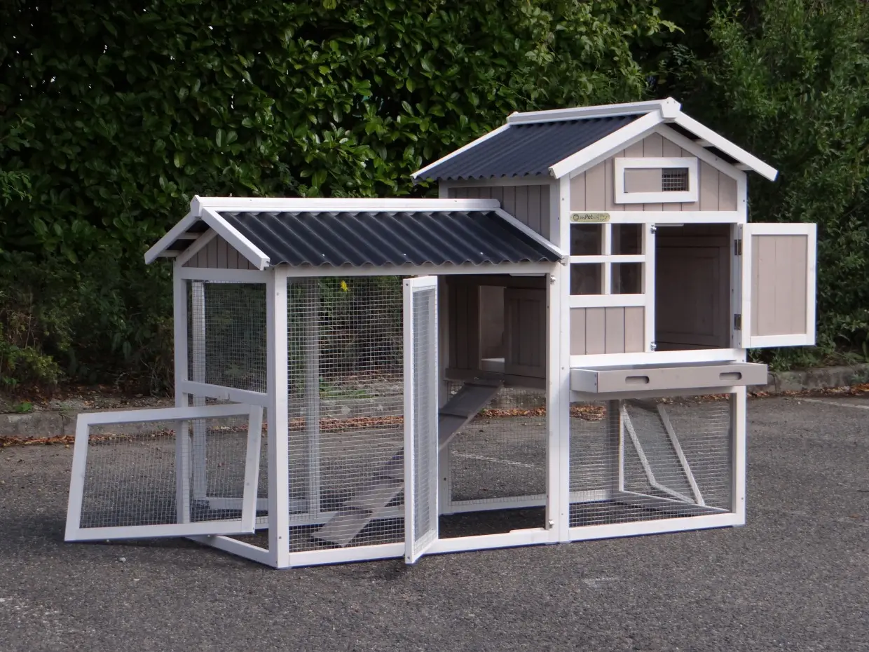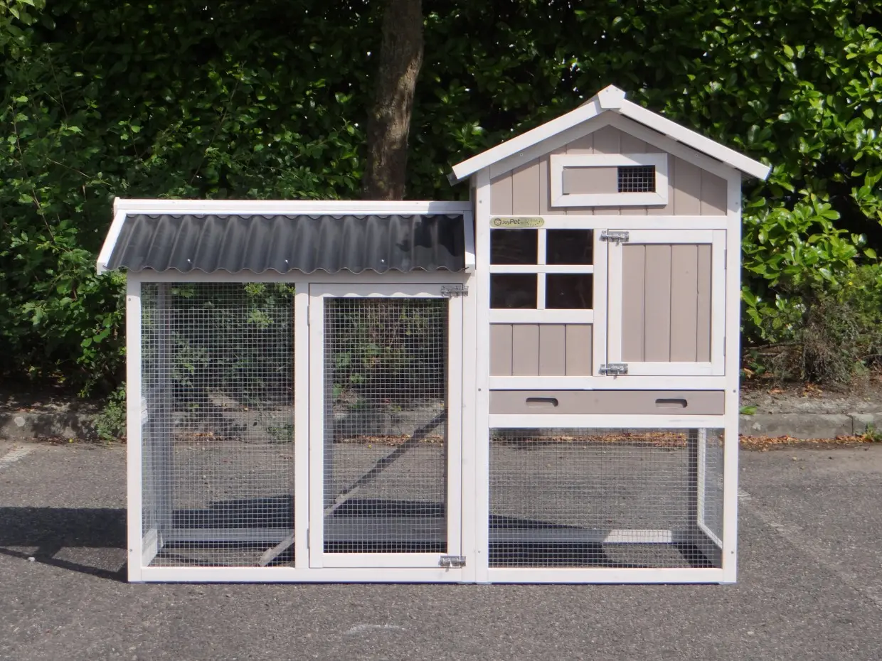 - Das Dach dieses Kaninchenstalls ist von Kunststof.