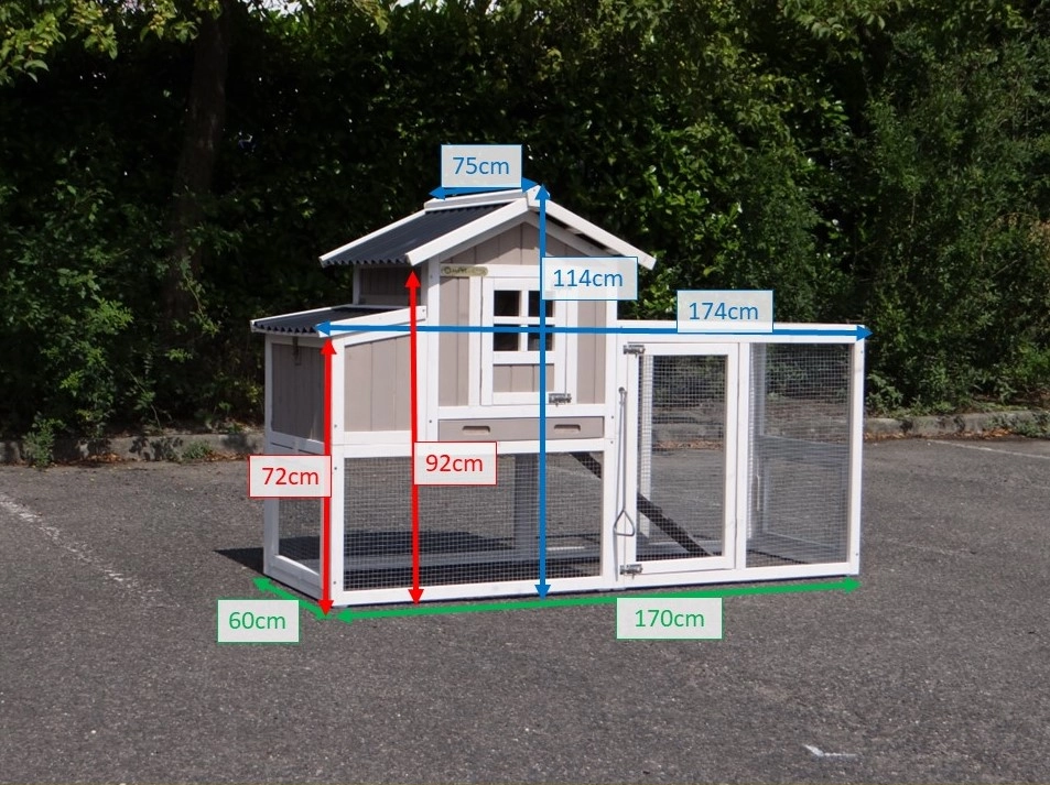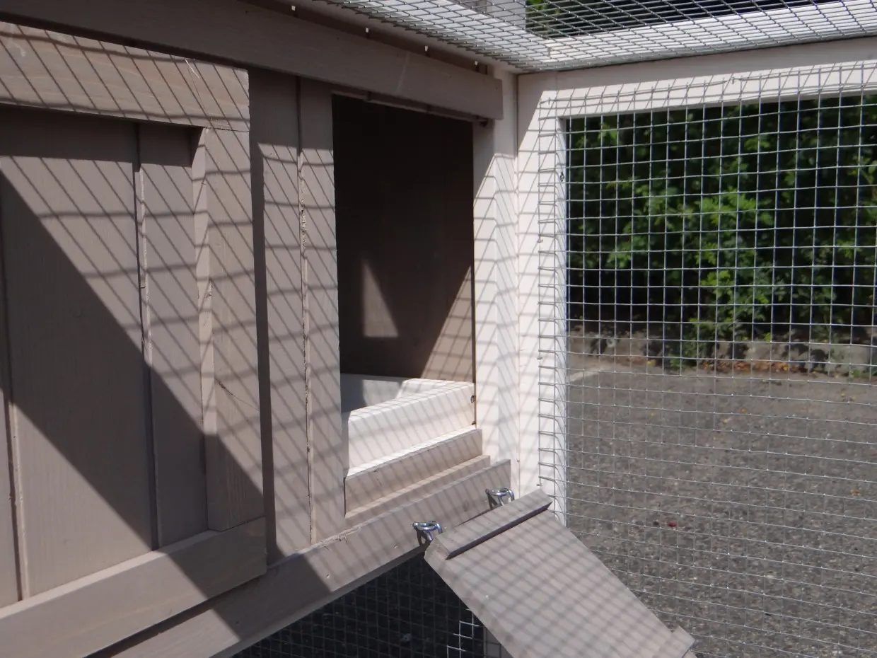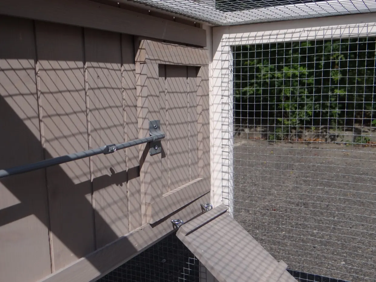 • Der Auslauf hat ein Dach aus Gitter (ca. 12x12mm)