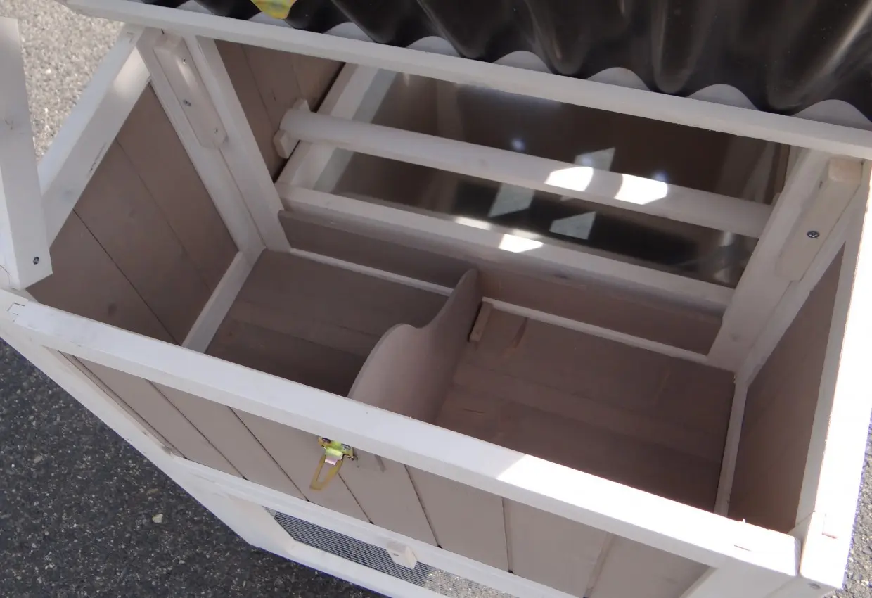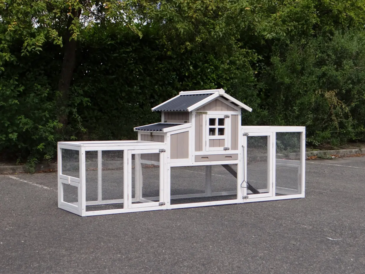 - Das Dach dieses Kaninchenstalls ist von Kunststof.