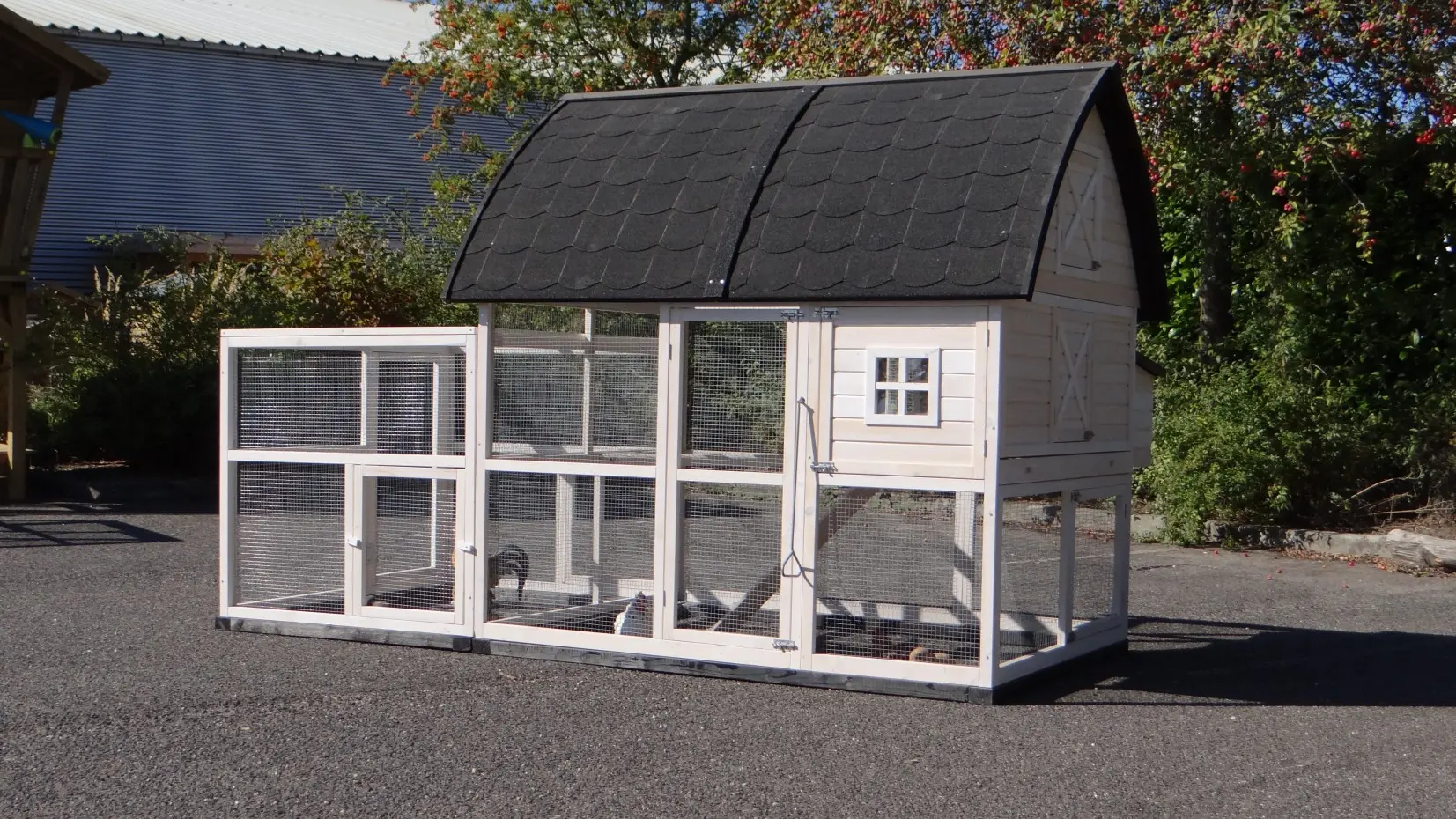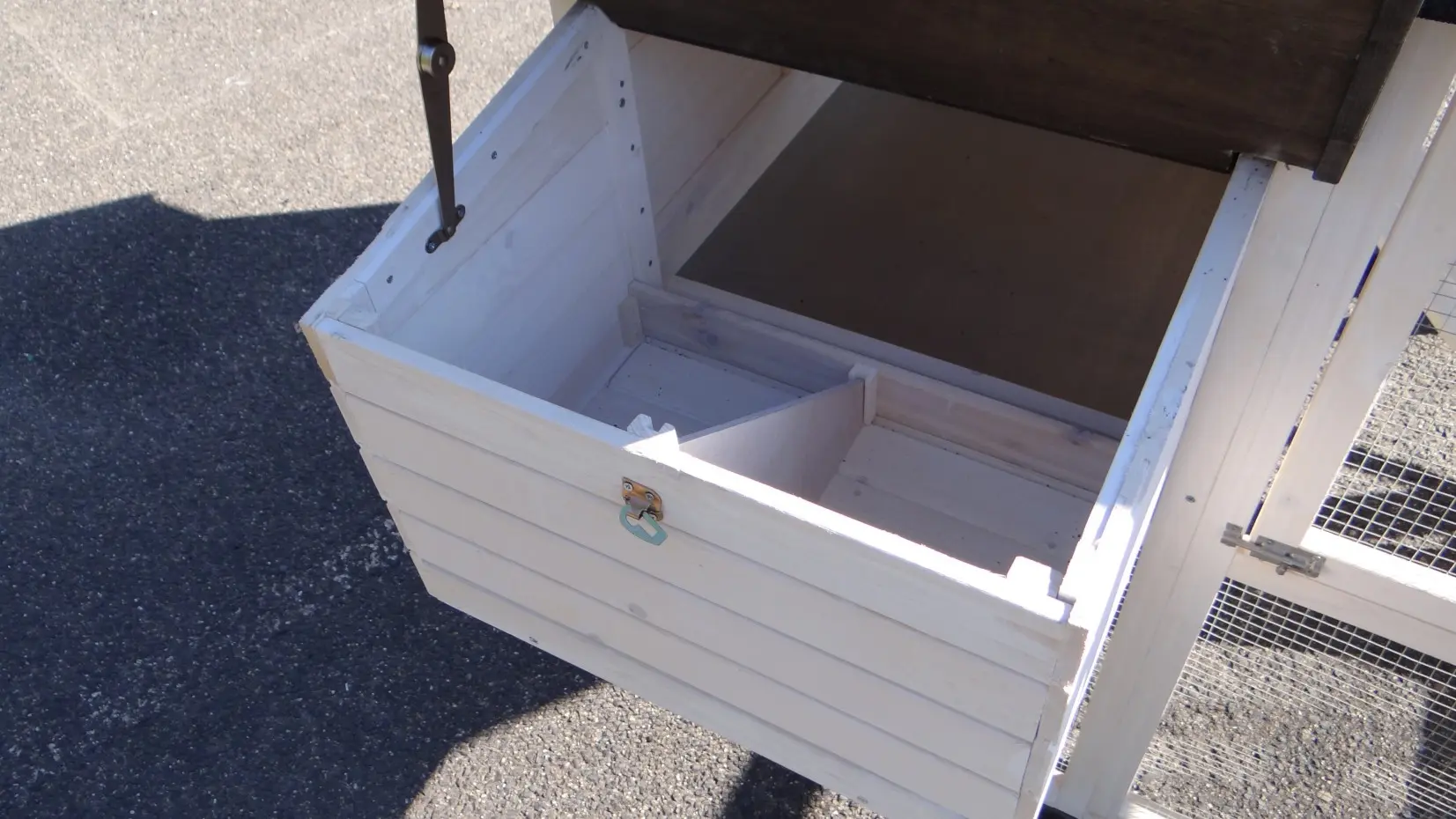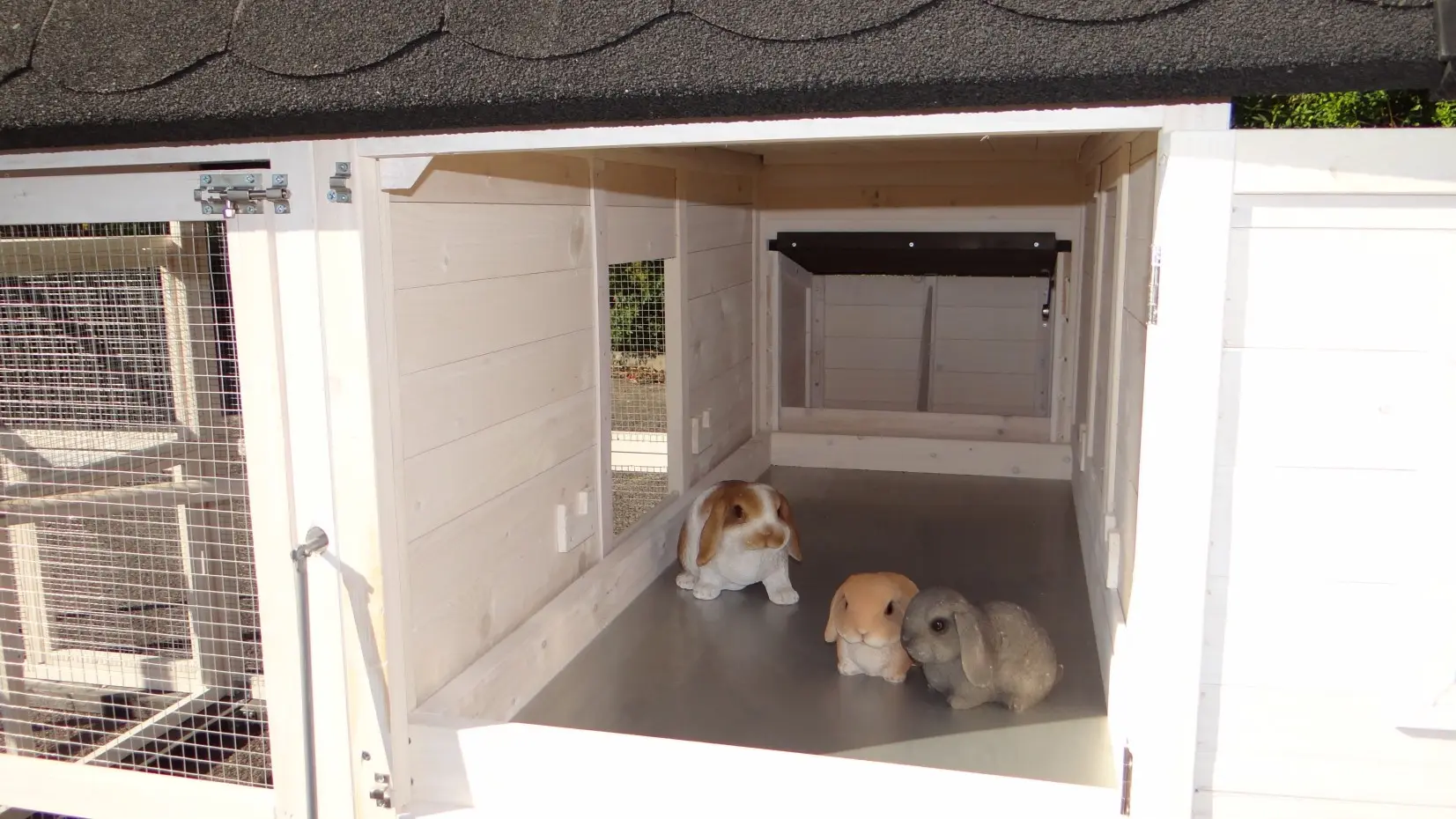 - Die Türen dieses Kaninchenstalls sind mit doppelten Schieberiegeln ausgestattet