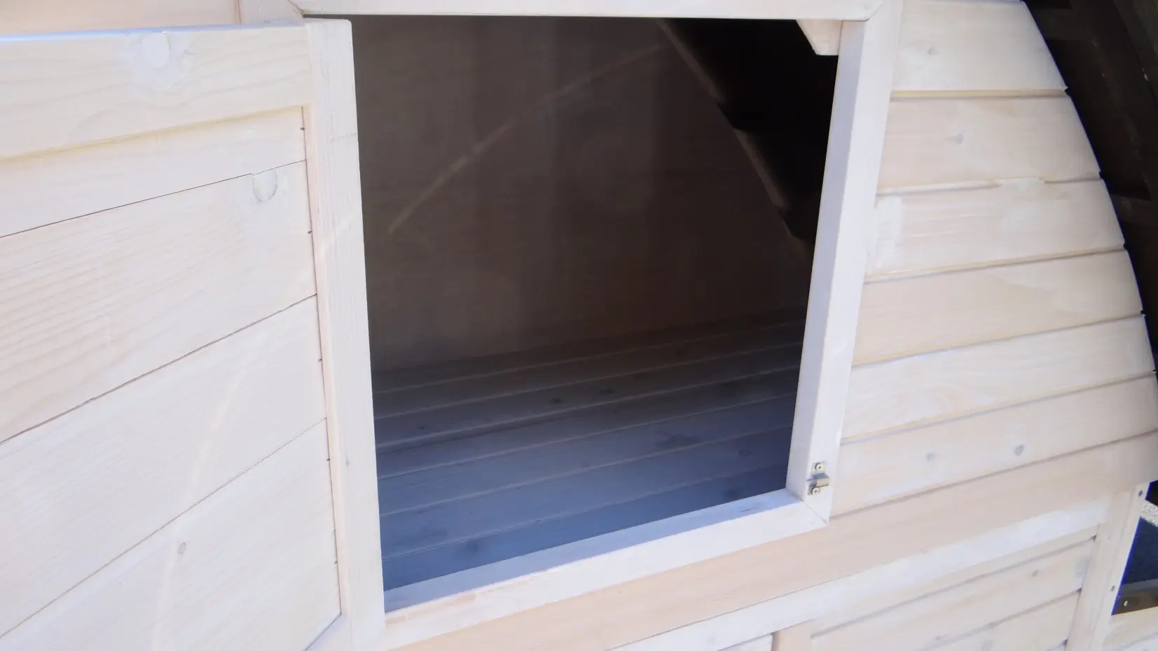 - Der Stall wurde aus schönem Kiefernholz hergestellt