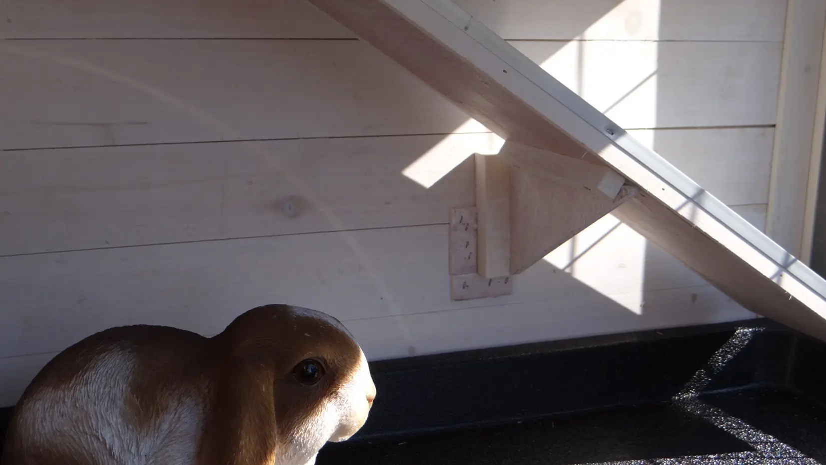 - Das Dach dieses Kaninchenstalls ist mit Dachpappe versehen.