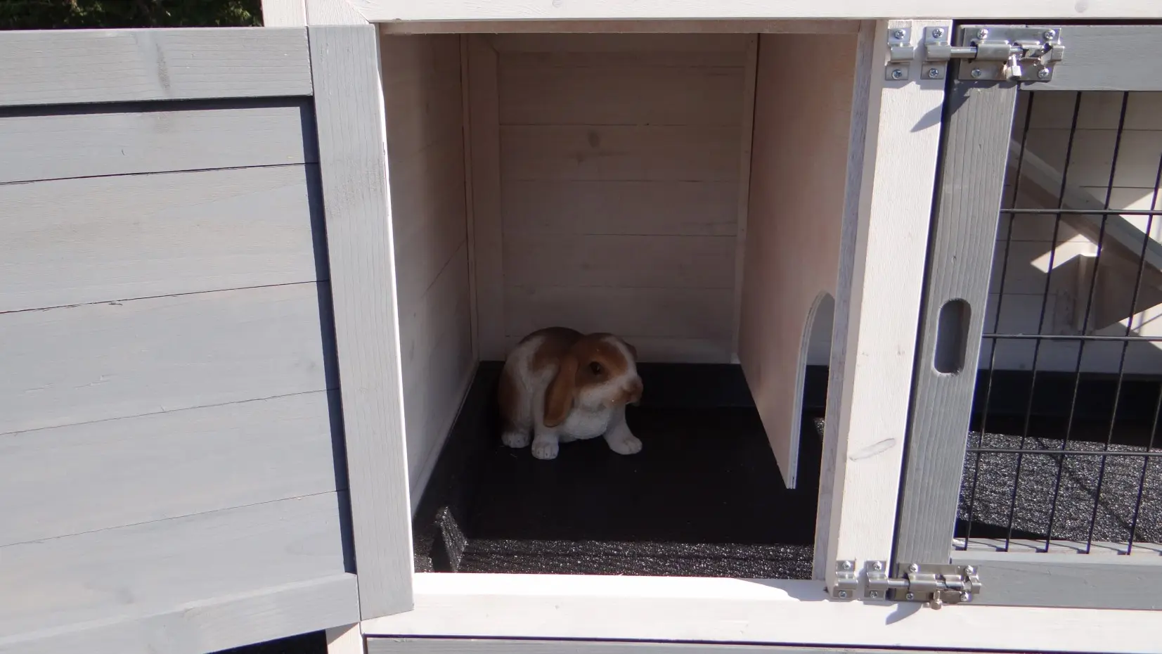 - Der Kaninchenstall besitzt eine praktische, herausziehbare Kotwanne.