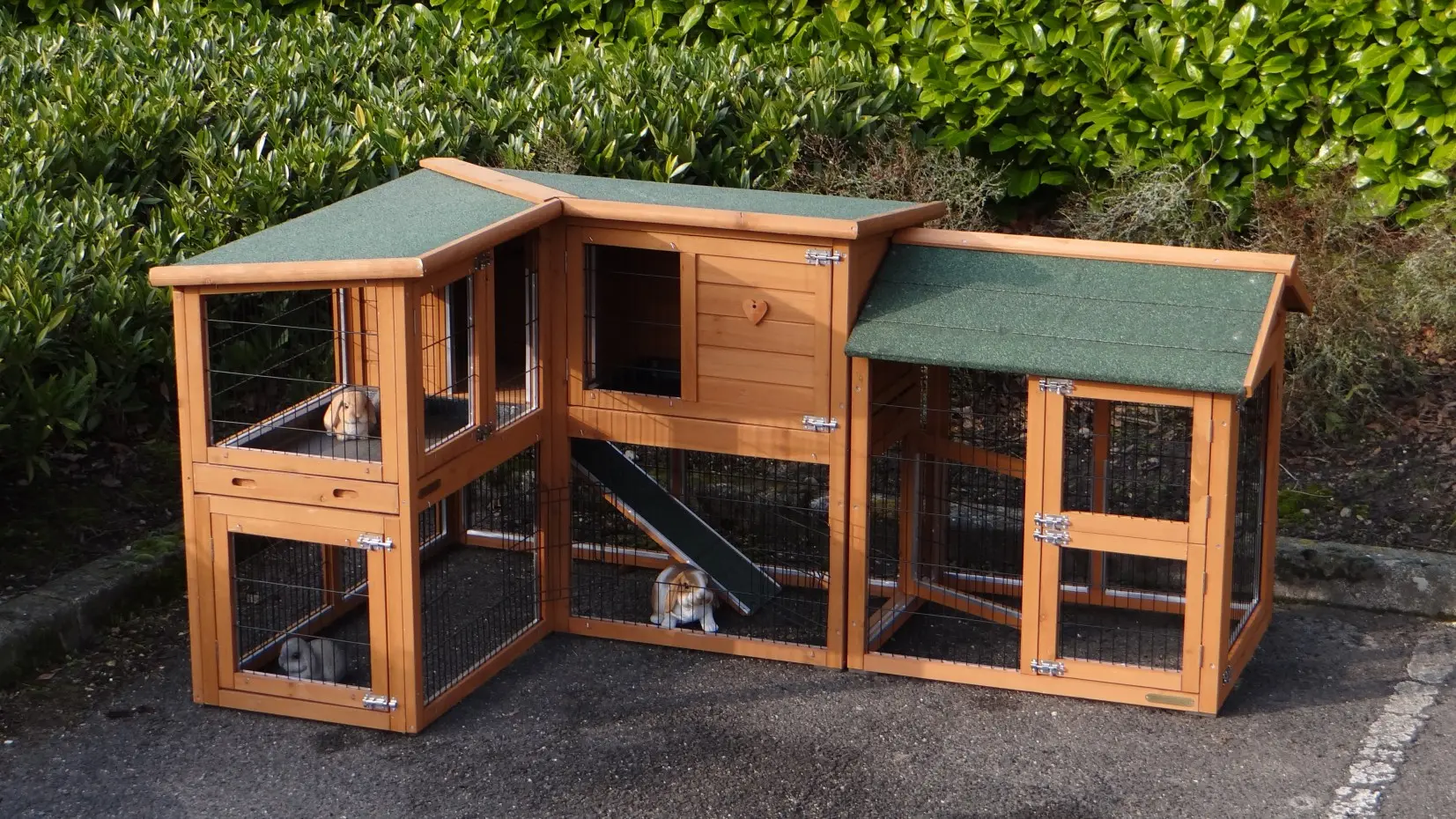 - Die Türen dieses Kaninchenstalls sind mit doppelten Schieberiegeln ausgestattet