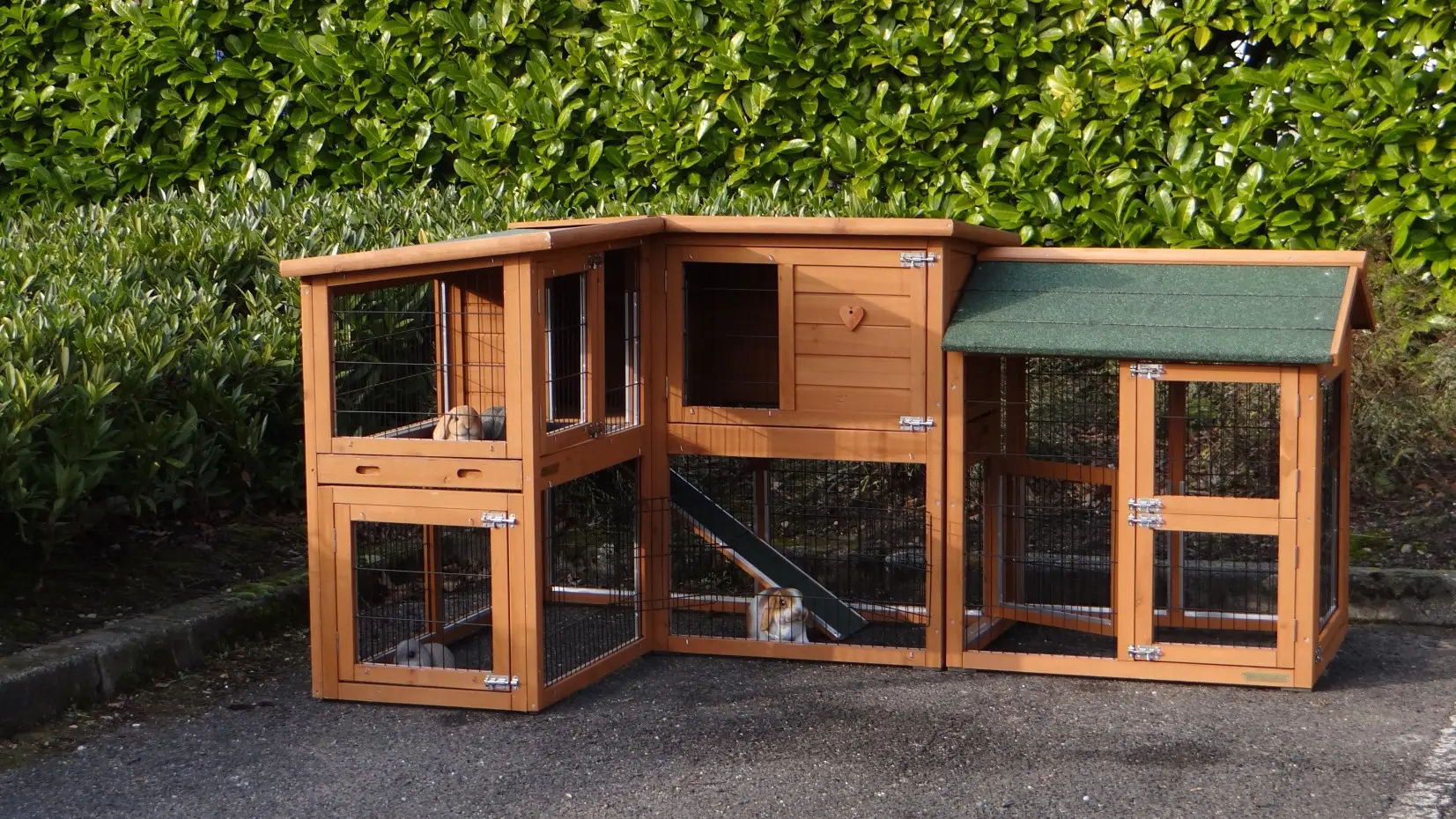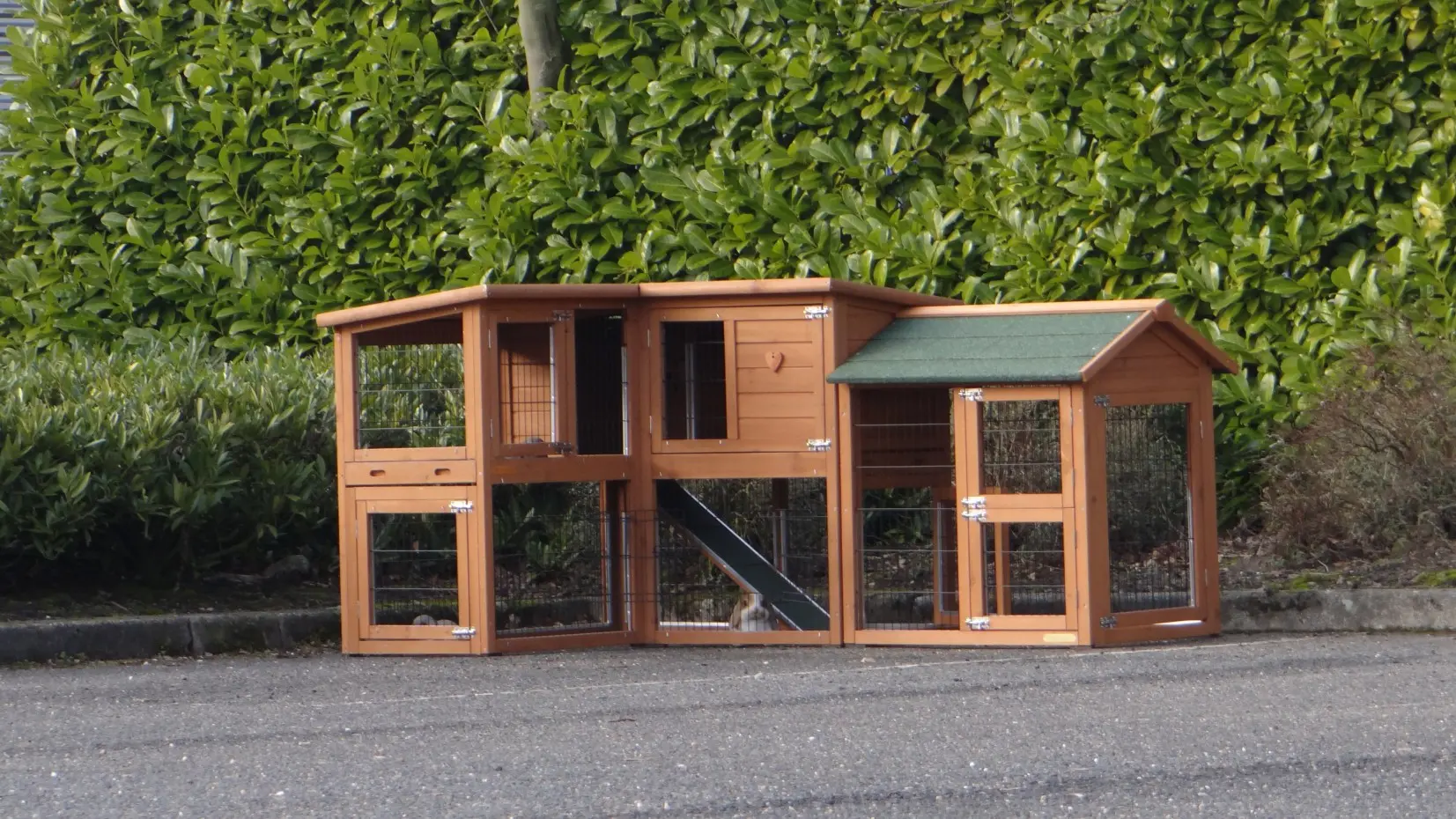 - Das Dach dieses Kaninchenstalls ist mit Dachpappe versehen.