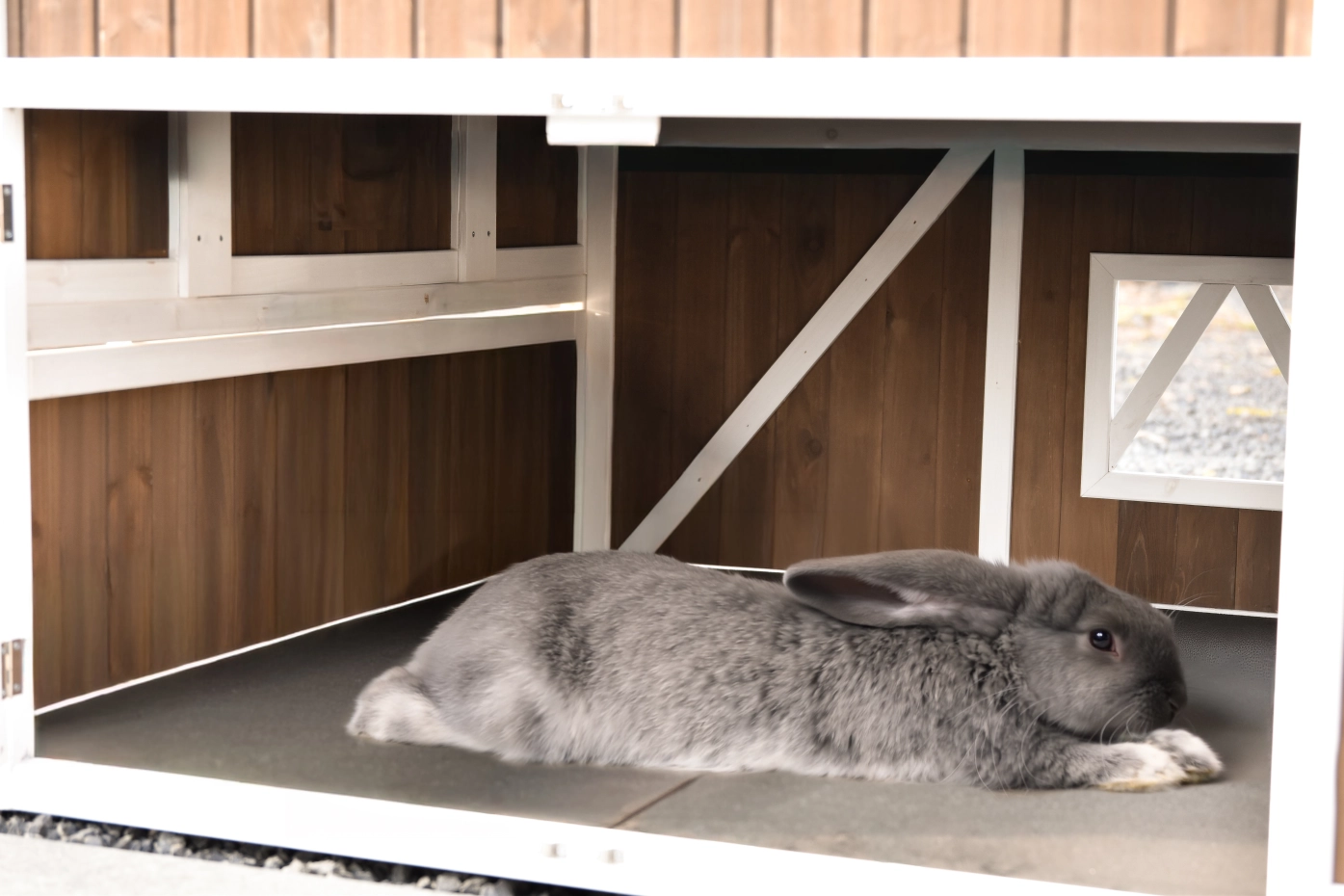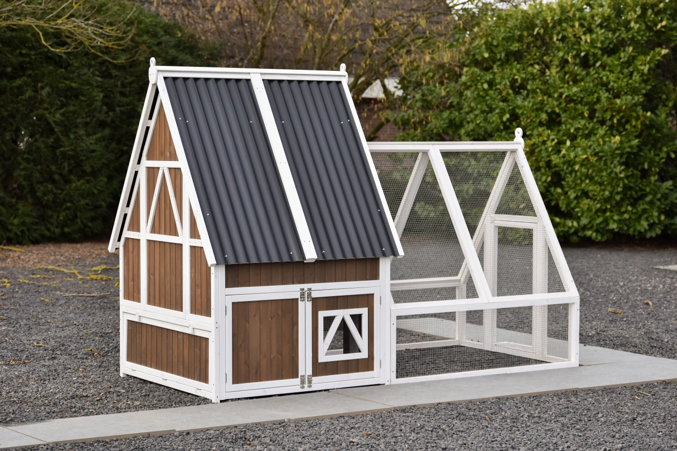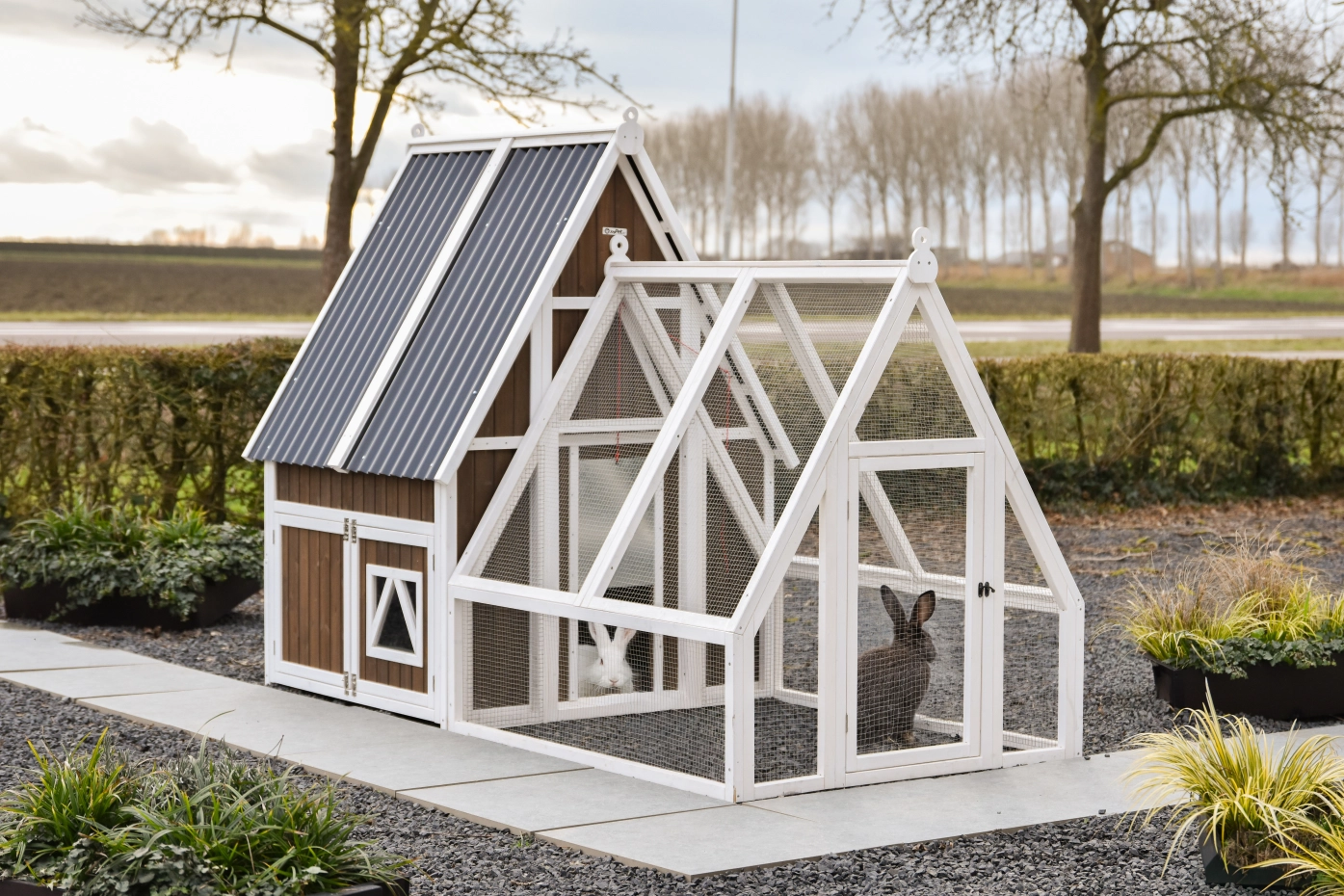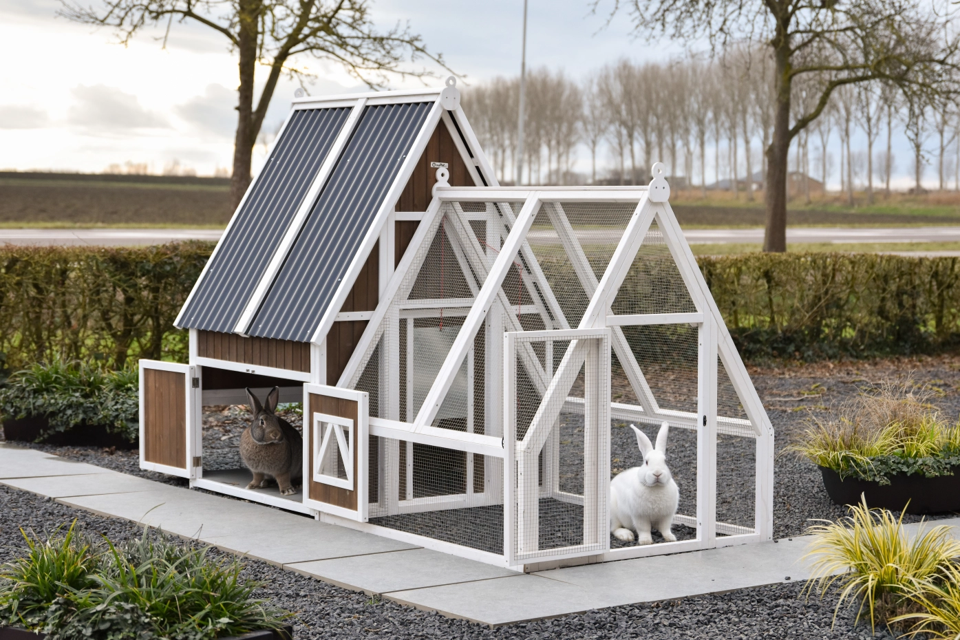 - Das Dach dieses Kaninchenstalls ist von Kunststof.