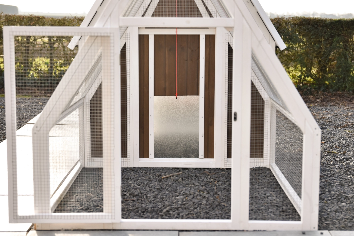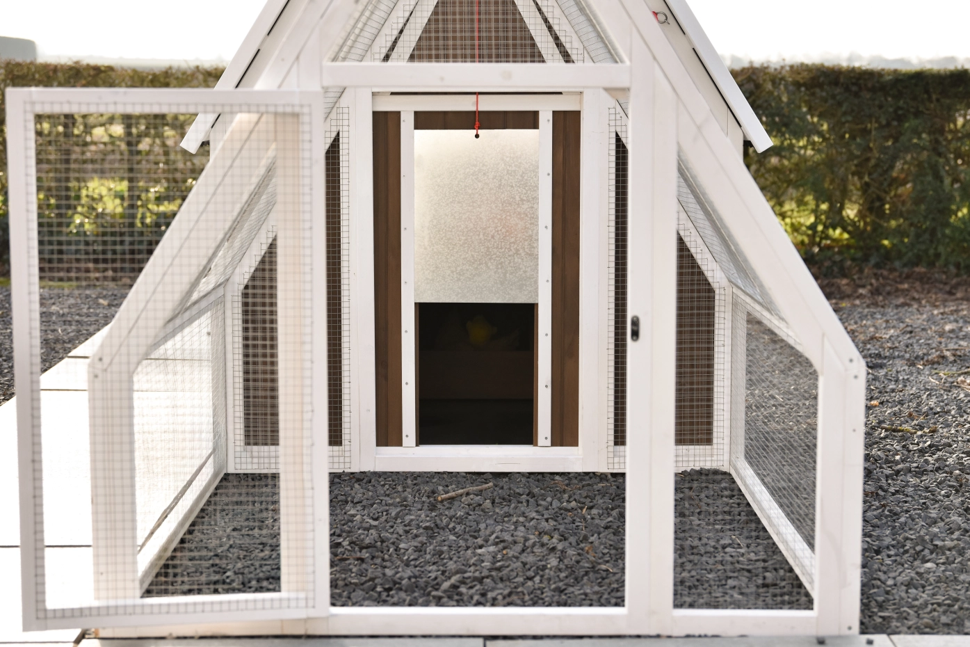 - Der Auslauf hat ein Dach aus Gitter (ca. 12x12mm)