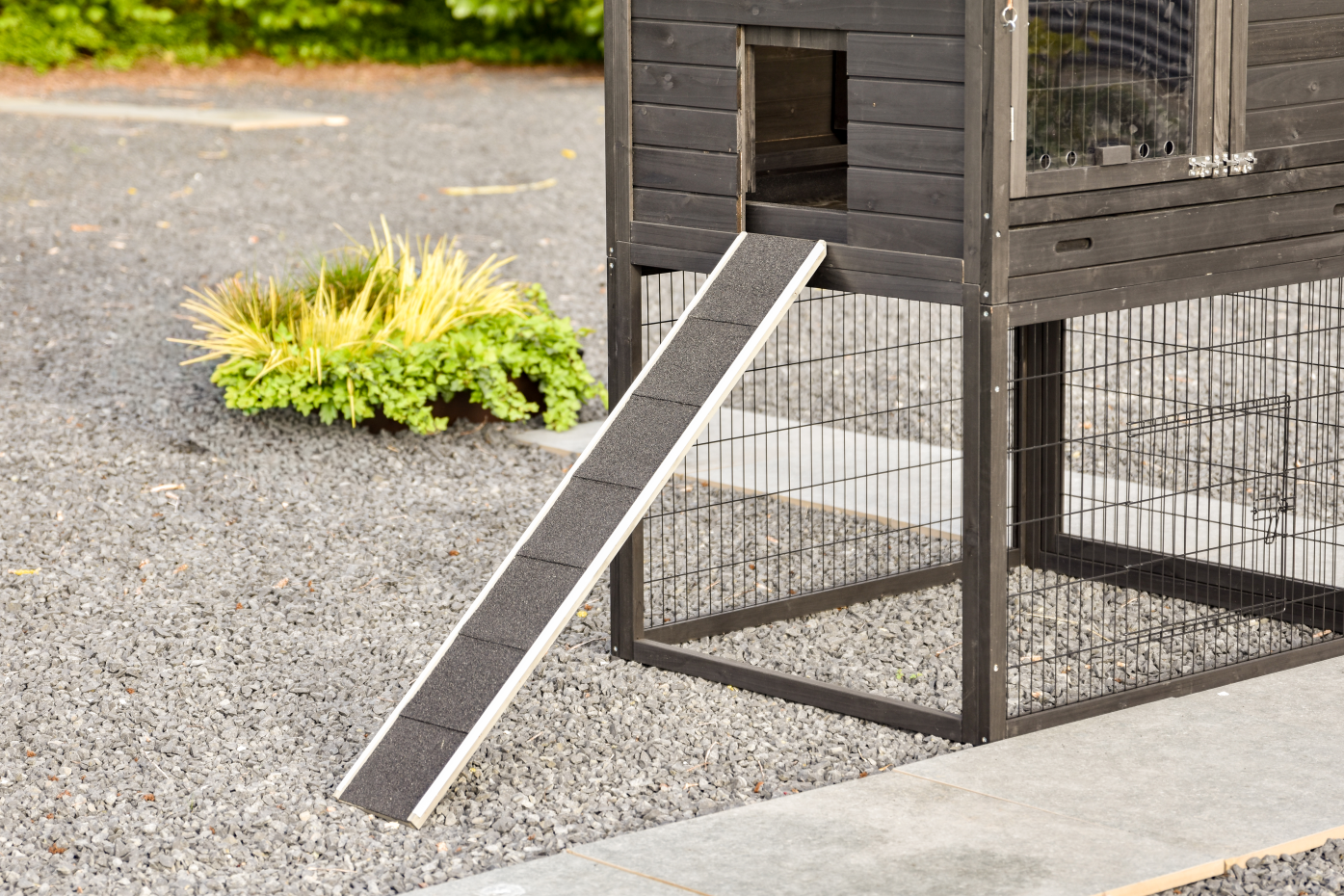 - Das Dach dieses Kaninchenstalls ist mit Dachpappe versehen.