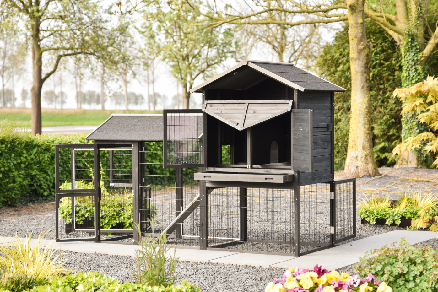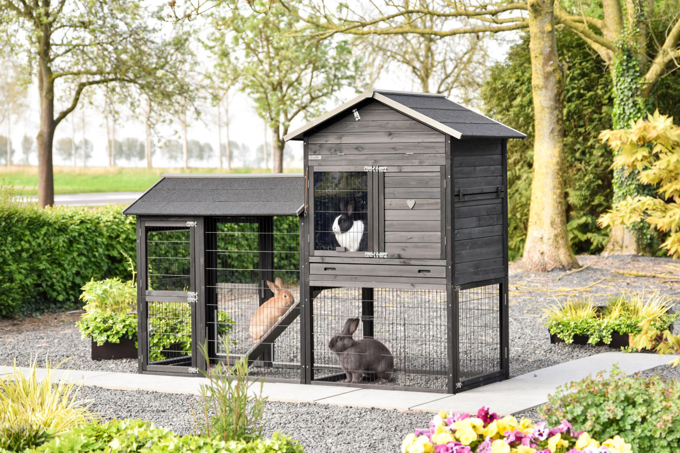 Kaninchenstall Prestige Large mit Auslauf Black