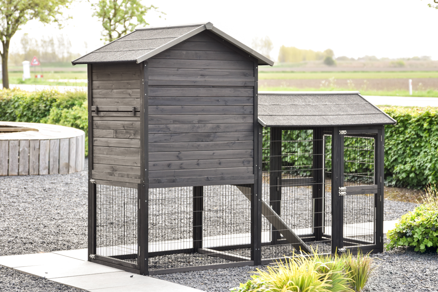 Ein geräumiger und praktischer Kaninchenstall, in dem sich Ihre Kaninchen sofort wohlfühlen Das großzügige Schlafhaus sorgt für Komfort und Ruhe, während die großen Türen die Pflege erleichtern Auf der linken Seite des Schlafhauses befindet sich ein Auslauf, sodass Ihre Kaninchen direkt über ausreichend Bewegungsfreiheit verfügen Dank der Gummifüße ist der Stall vor aufsteigender Feuchtigkeit geschützt Außerdem lässt sich der Kaninchenstall einfach mit mehreren Ausläufen kombinieren, sodass Sie das Ganze endlos erweitern können