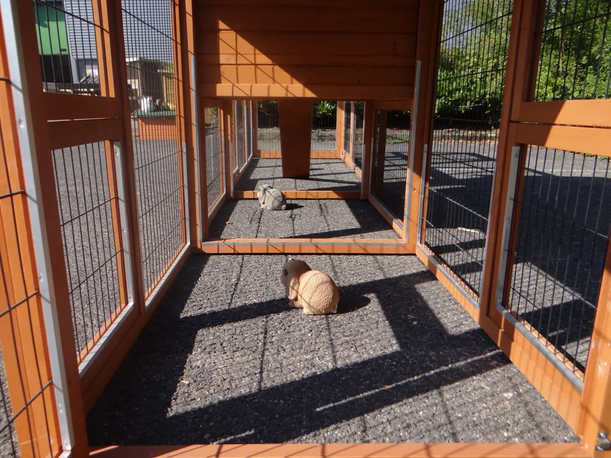 - Die Türen dieses Kaninchenstalls sind mit doppelten Schieberiegeln ausgestattet