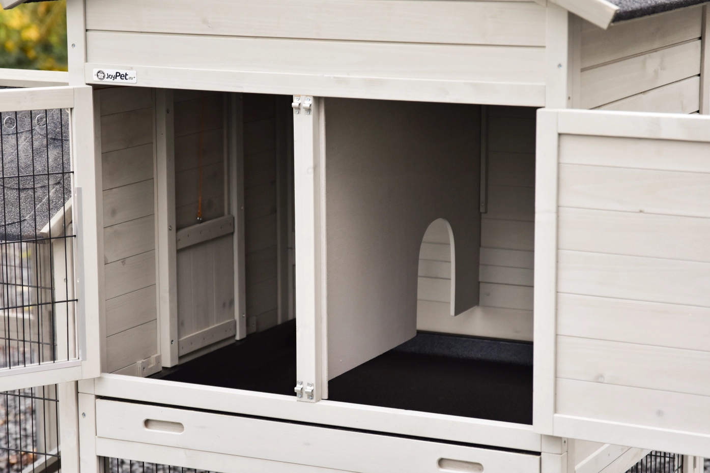 - Der Stall ist an empfindlichsten Stellen mit Nageschutzstreifen ausgestattet. Für ungeschützte Ränder können Sie Nagerschutzstreifen bestellen.