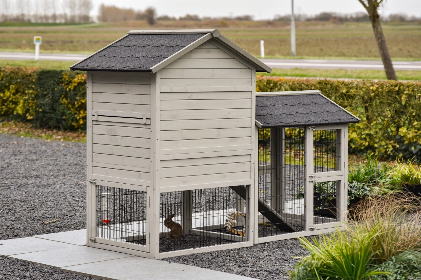 Kaninchenstall Prestige Medium | mit Auslauf links Light-grey