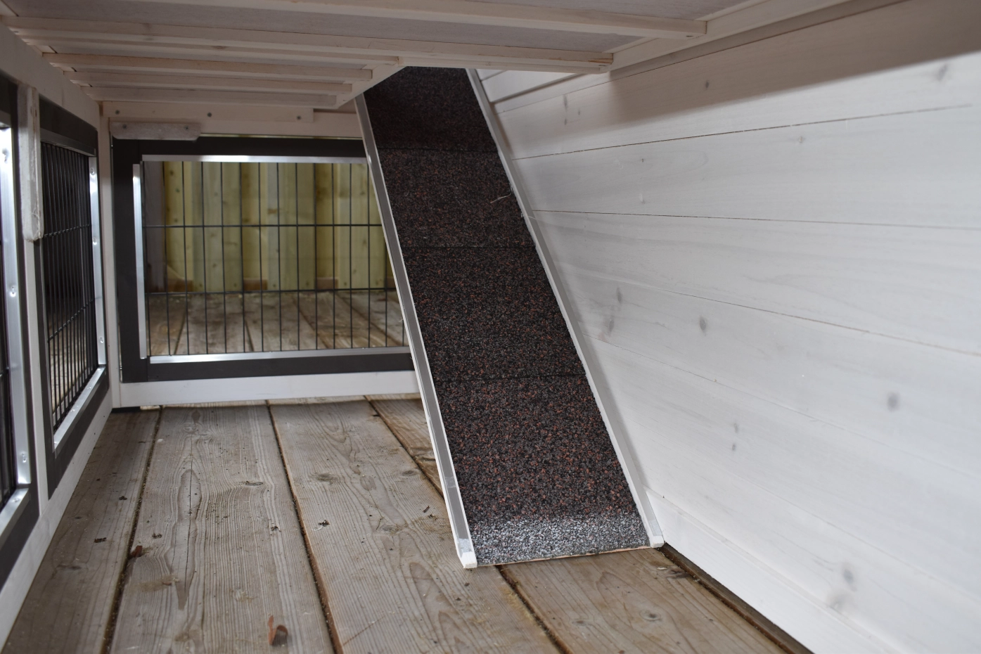 • Der Stall ist an empfindlichsten Stellen mit Nageschutzstreifen ausgestattet. Für ungeschützte Ränder können Sie Nagerschutzstreifen bestellen.