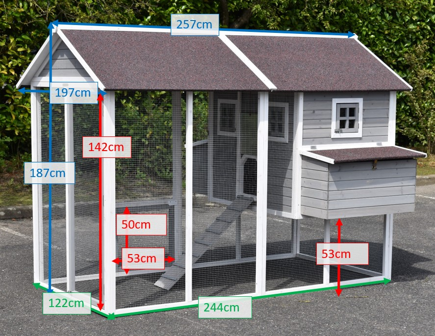 Kaninchenstall Royalty ist ein schöne, große Kaninchenstall. Diese Kaninchenstall hat ein groß Schlafraum und ein große Auslauf. Die max. Höhe im Auslaus ist 183cm. Der Stall ist geeignet für 4 à 8 Kaninchen. Der Kaninchenstall ist ausgestattet mit 2 Nistkasten. Unter der Schlafraum ist eine Schublade, um der Schlafraum einfach sauber zu machen. Der Schlafraum ist ausgestattet mit ein große Tür.