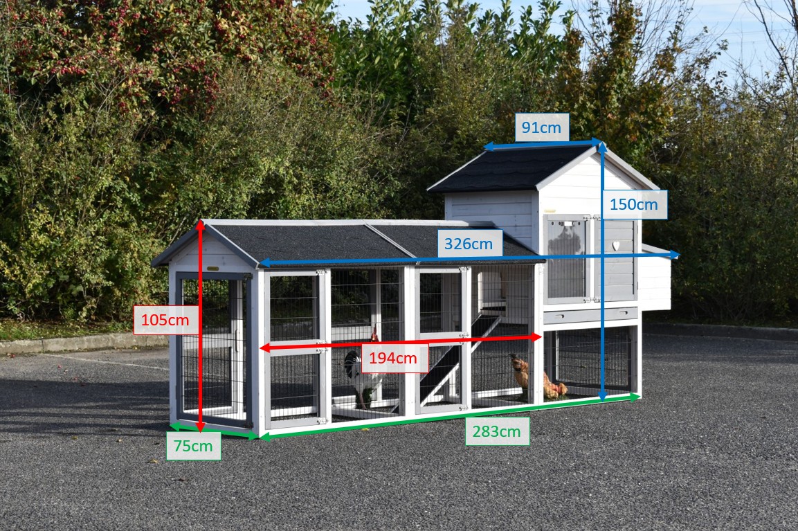 Kaninchenstall Prestige Medium ist ein schöne Stall mit Nageschutzstreifen, große Türen und gummi Füßen. Diese Stall hat ein groß Schlafraum und ein große Auslauf. Die max. Abmessungen sind 326x90x150cm . Diese Stall kann, mit ein kleine Anpassung, spiegelverkehrt aufgebaut werden.