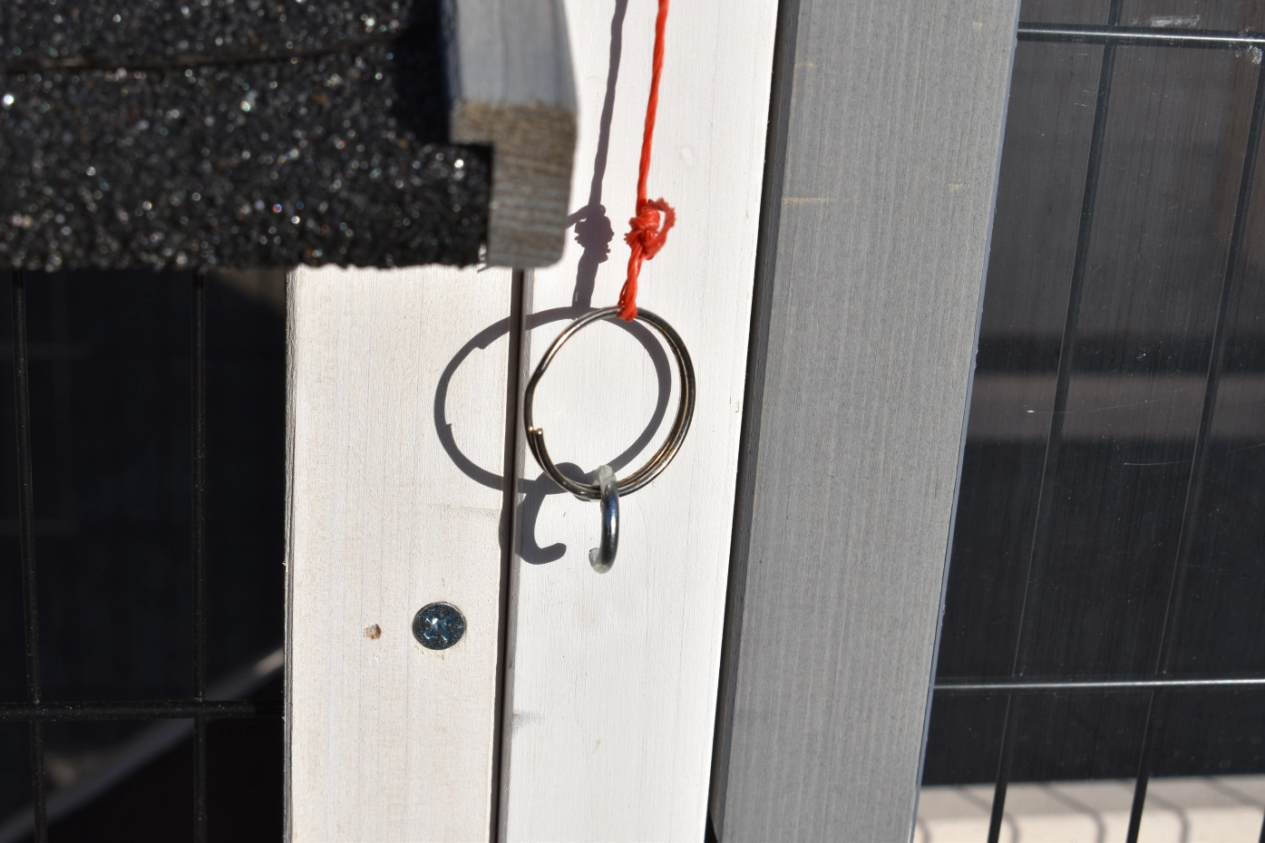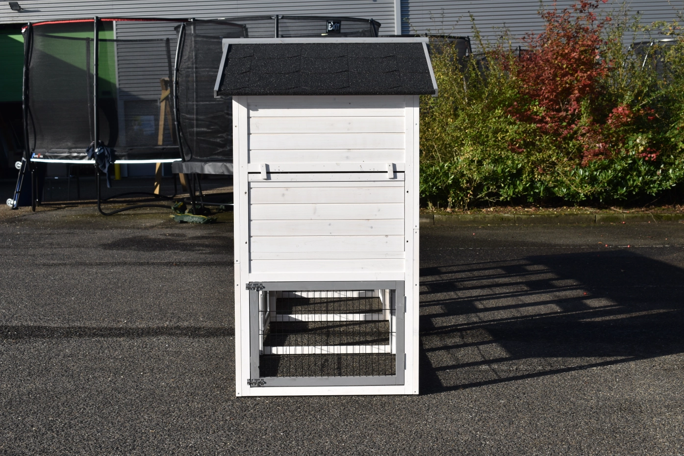 - Die Türen dieses Kaninchenstalls sind mit doppelten Schieberiegeln ausgestattet