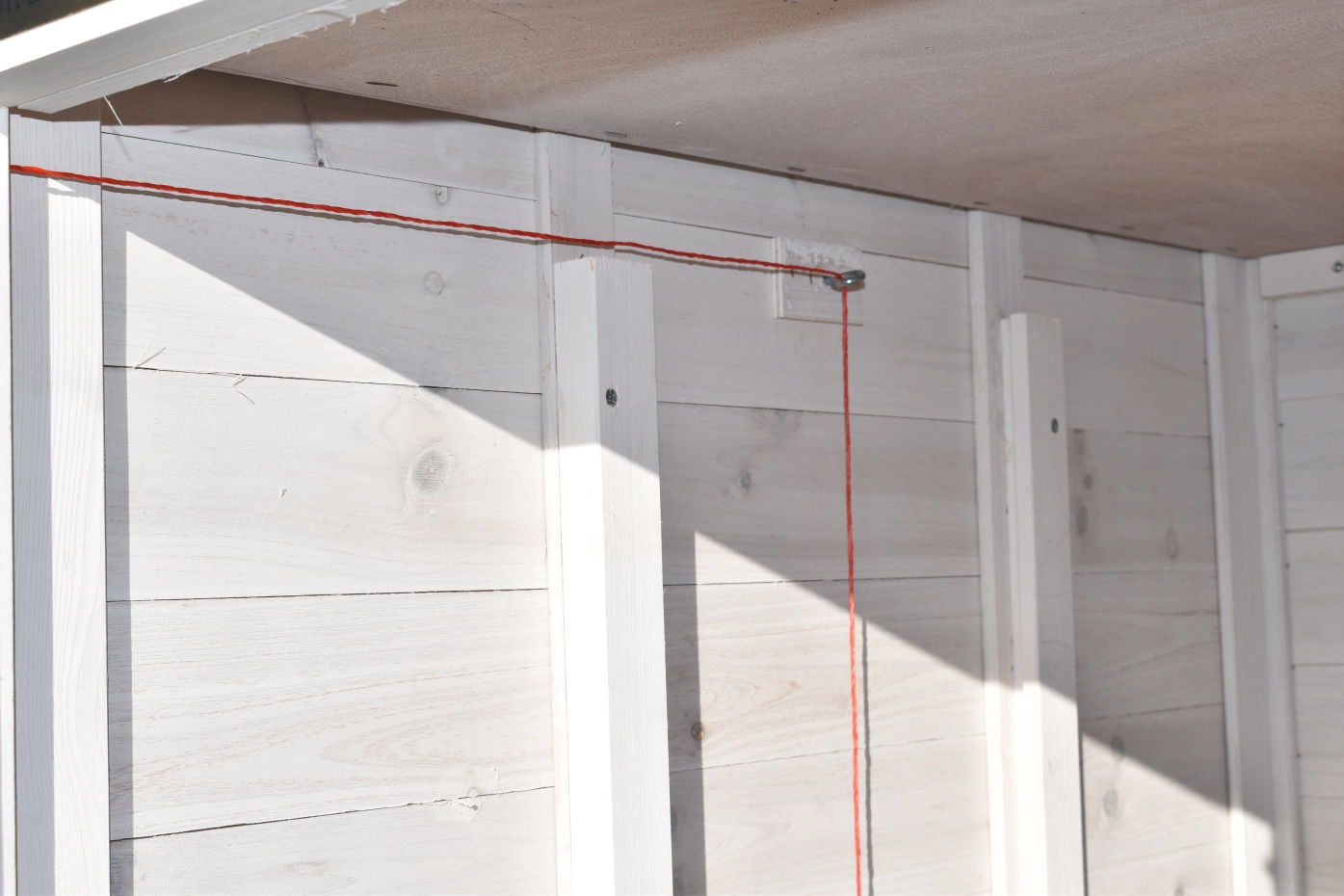 - Steht der Stall nicht auf einem geschützten Platz, empfehlen wir Ihnen, den Stall zu verankern.