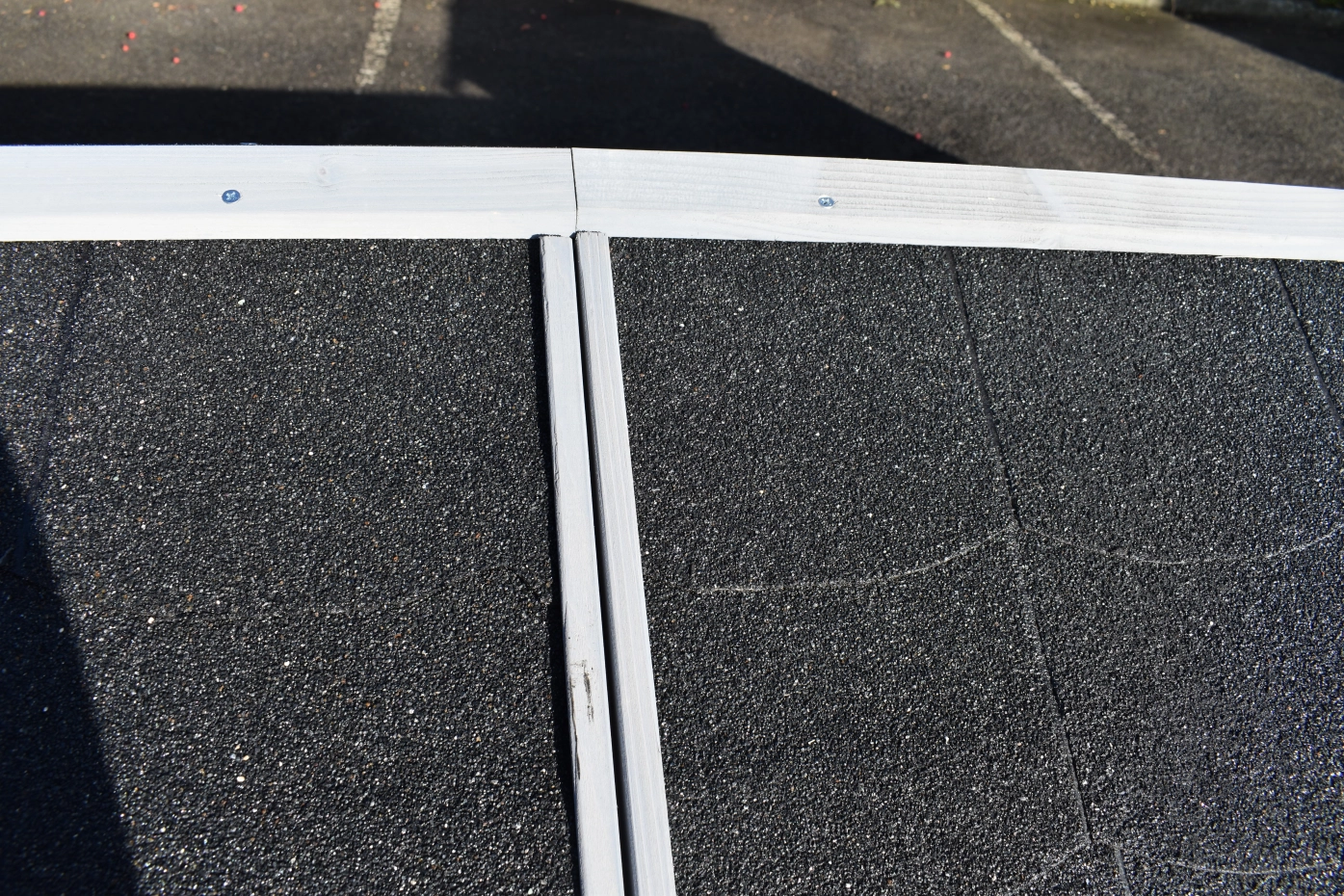 - Das Dach dieses Außengeheges ist mit Dachpappe versehen