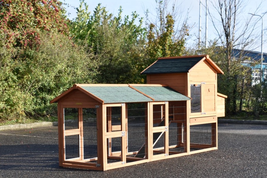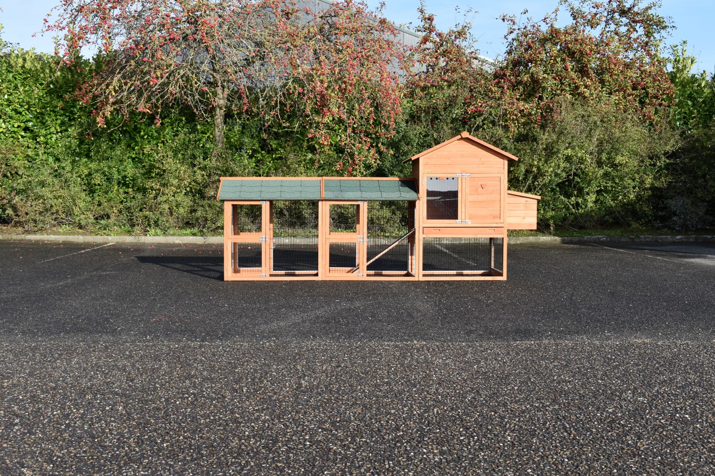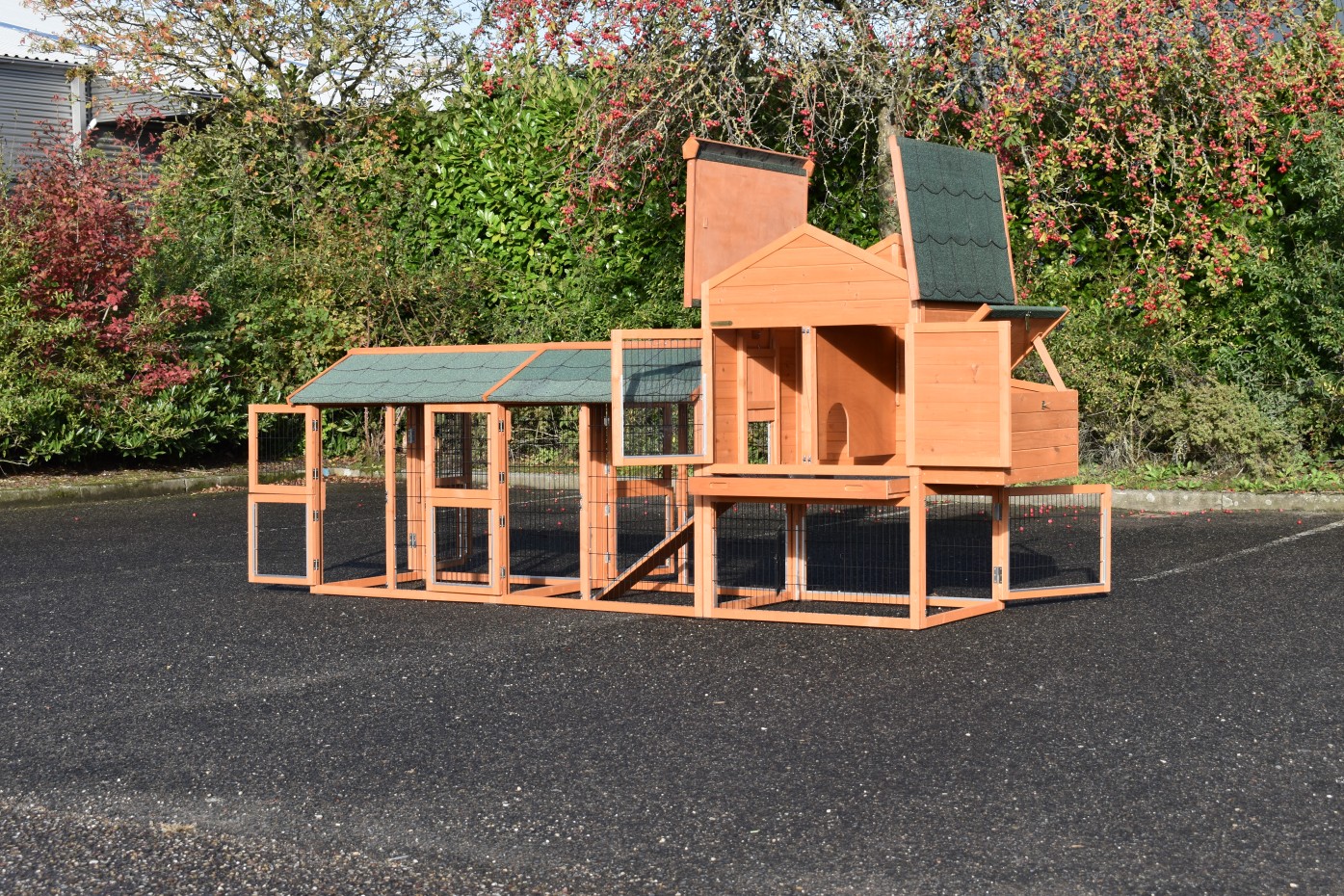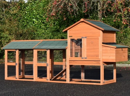 Kaninchenstall Prestige Medium ist an den empfindlichsten Stellen mit Aluminiumkanten veredelt, sodass Ihre Kaninchen nicht überall am Holz nagen können. Ein großartiger Unterschlupf für Ihre Kaninchen, erweitert mit 2 Gehegen und einem Nistkasten. Dieser wunderschöne Kaninchenstall ist bis ins Detail hervorragend verarbeitet und verfügt über geräumige Türen und ein großzügiges Schlafhaus. Für optimalen Schutz steht der Kaninchenstall auf Gummifüßen. Dies macht den Kaninchenstall Prestige Medium äußerst praktisch in der Anwendung. Der Kaninchenstall Prestige Medium ist unendlich erweiterbar. Mit ein kleine Anpassung können Sie diese Stall auch spiegelverkehrt aufbauen.
