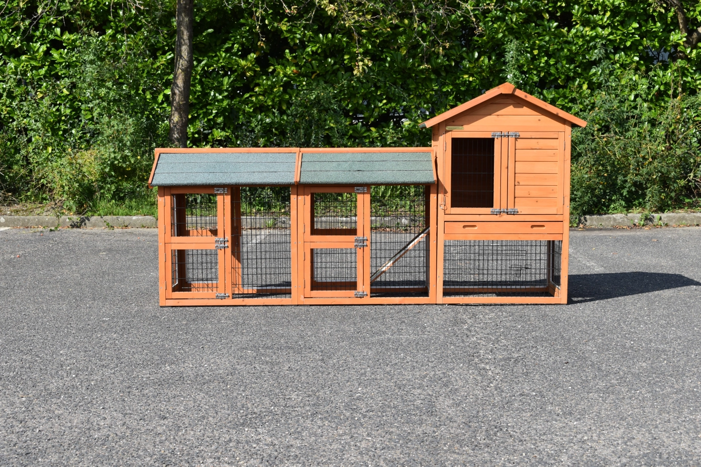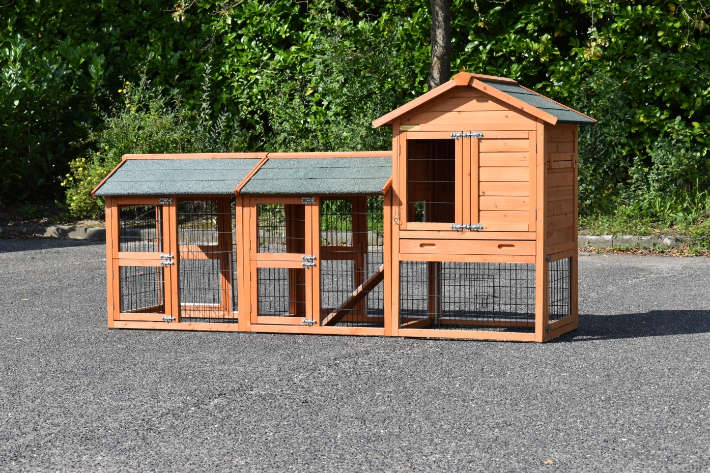 - Die Türen dieses Kaninchenstalls sind mit doppelten Schieberiegeln ausgestattet