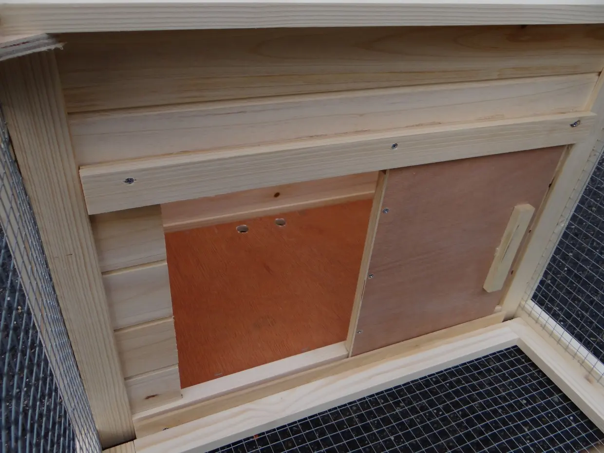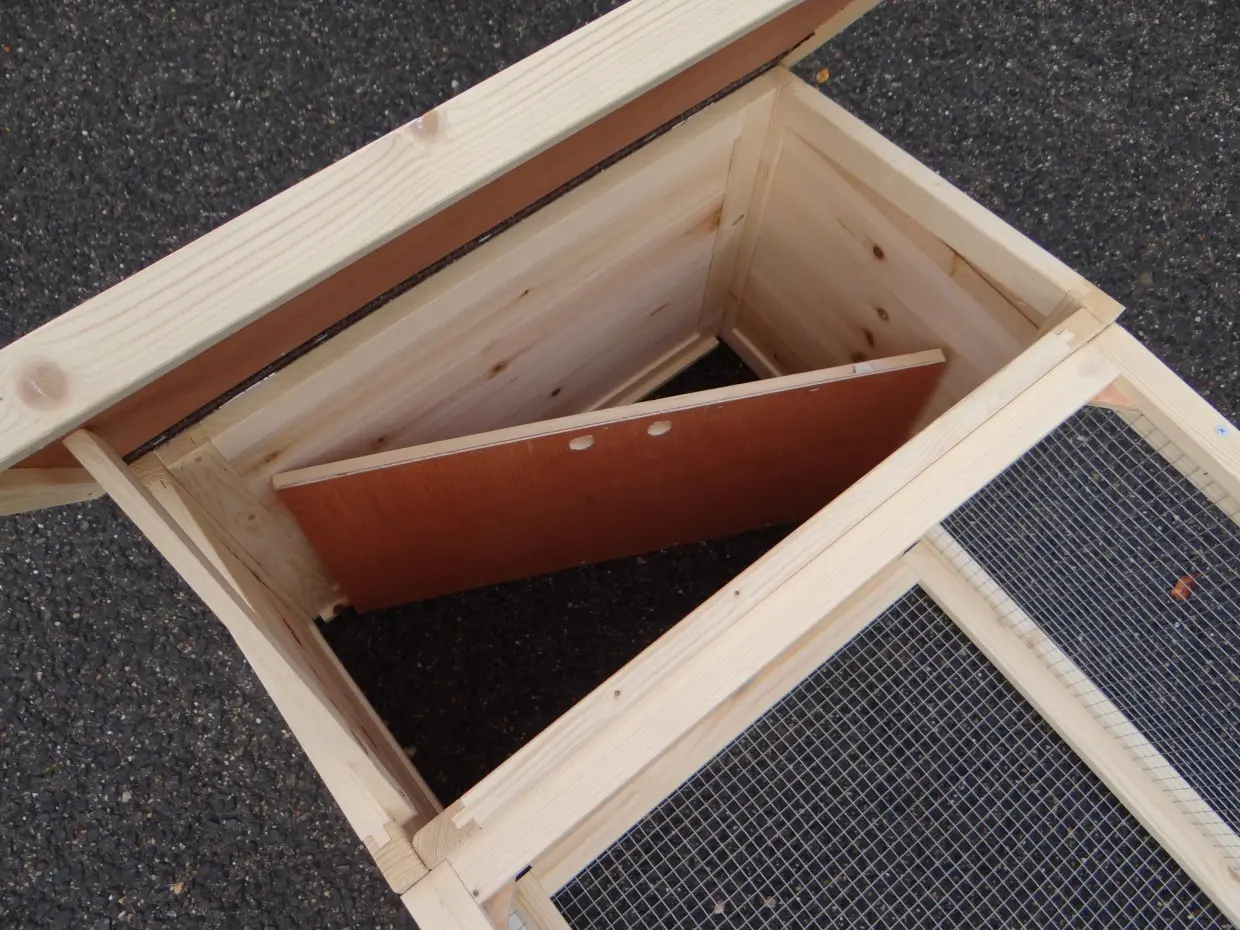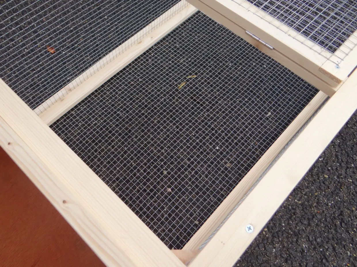 - Der Auslauf hat ein Dach aus Gitter (ca. 12x12mm)